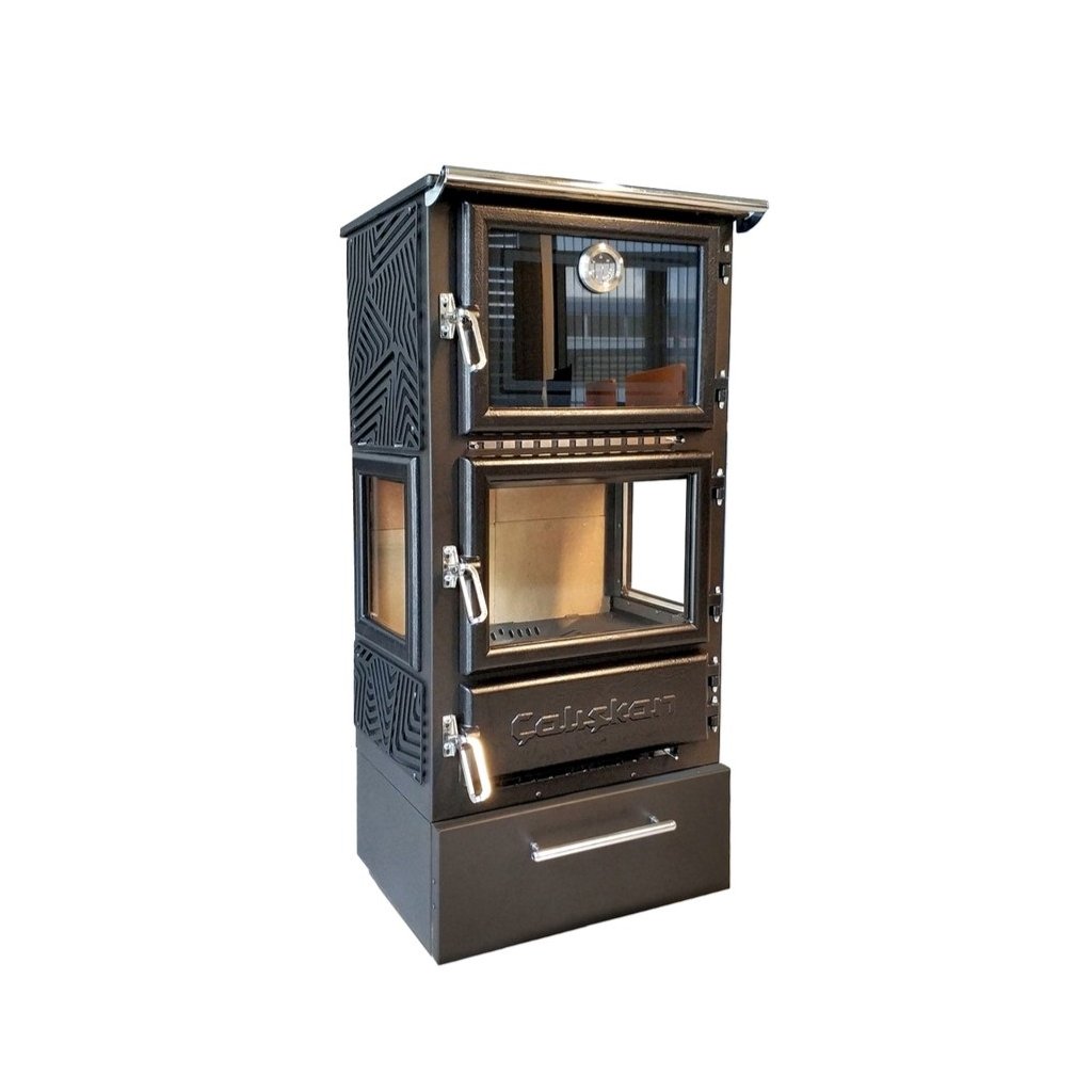 - Trouba má litinová dvířka s teploměrem a žáruvzdorným sklem