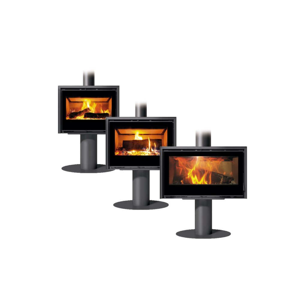 Designový podstavec pro modelovou řadu krbových kamen RI nabízí netradiční řešení instalace.