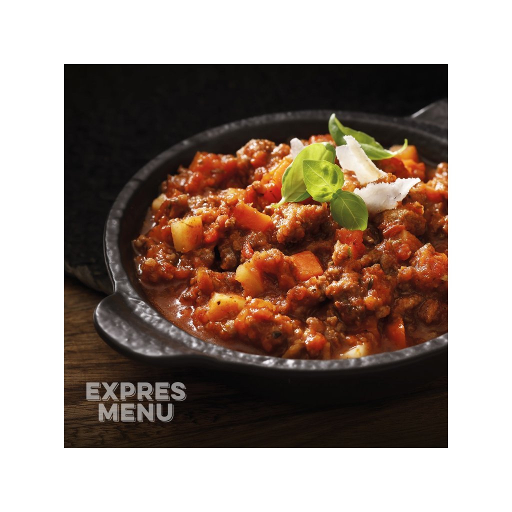 Klasická italská omáčka připravená z mletého hovězího masa, šťavnatých rajčat, kořenové zeleniny a aromatických bylinek, které připomínají vůni Středomoří.