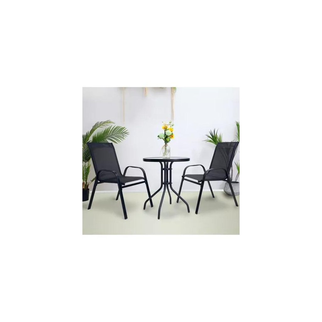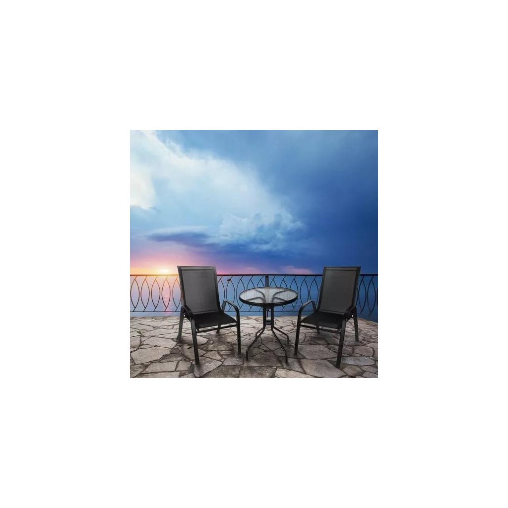 Tato 3dílná sada zahradního nábytku Gardlov je ideální volbou pro každého, kdo hledá pohodlné a odolné řešení pro svůj balkon, terasu nebo zahradu. Moderní a elegantní design umožňuje využití nejen venku, ale i v interiéru. Souprava obsahuje dva pohodlné křesla/židle s opěrkami a stůl s deskou z tvrzeného skla. Díky pevným materiálům je nábytek odolný vůči vlhkosti a UV záření, takže se nemusíte bát deštivého počasí.