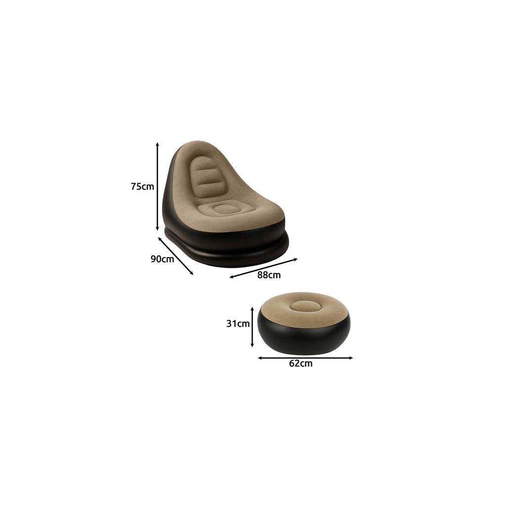 - Rozměry křesla (nafouknuté): 75 x 90 x 88 cm