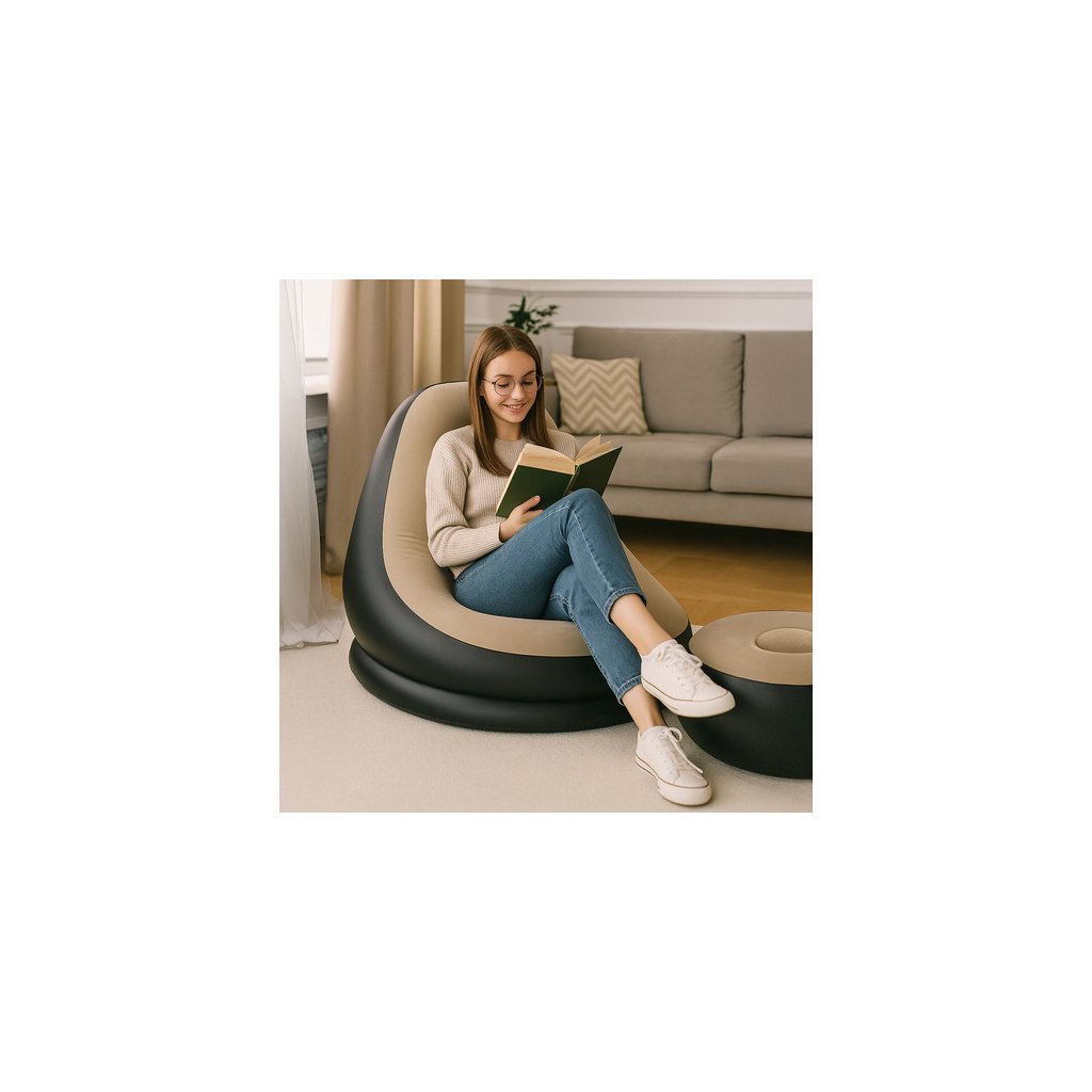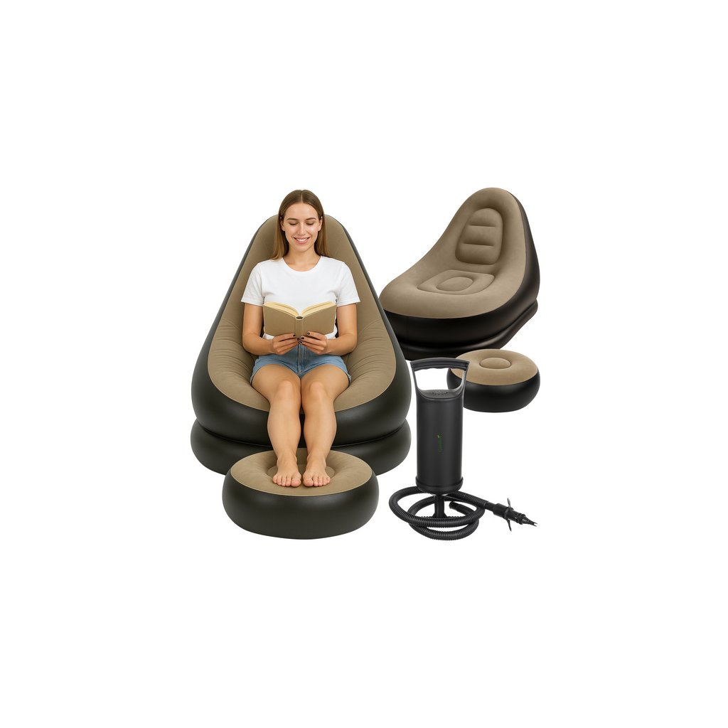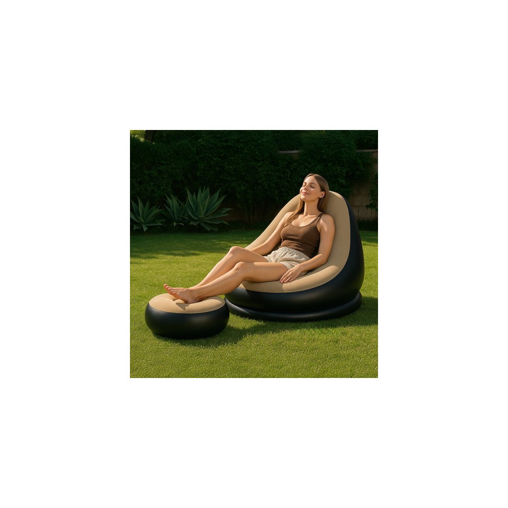 - Typ: nafukovací křeslo s opěrkou nohou