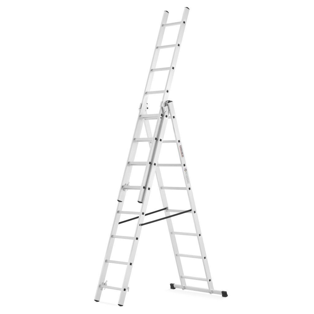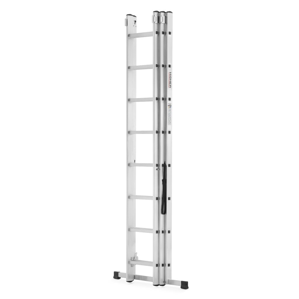 Univerzální hliníkový žebřík HIGHER I-6308 s trojdílnou konstrukcí po 8 příčkách je ideálním řešením pro práci na rovném i nerovném terénu, včetně schodišť. Umožňuje použití jako přistavný, volně stojící, výsuvný žebřík nebo žebřík na schody. Díky robustnímu provedení a individuálně nastavitelným sekcím je vhodný pro domácí i profesionální využití.