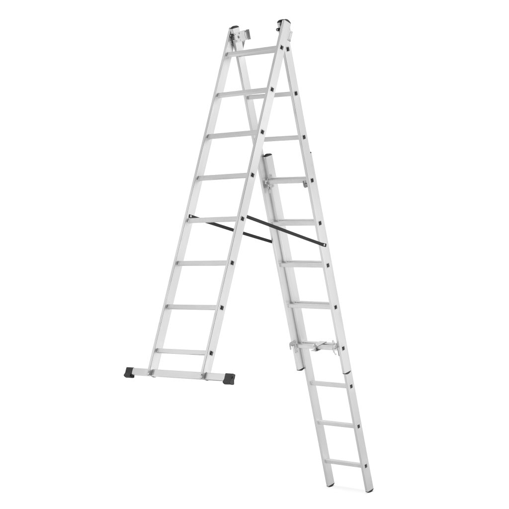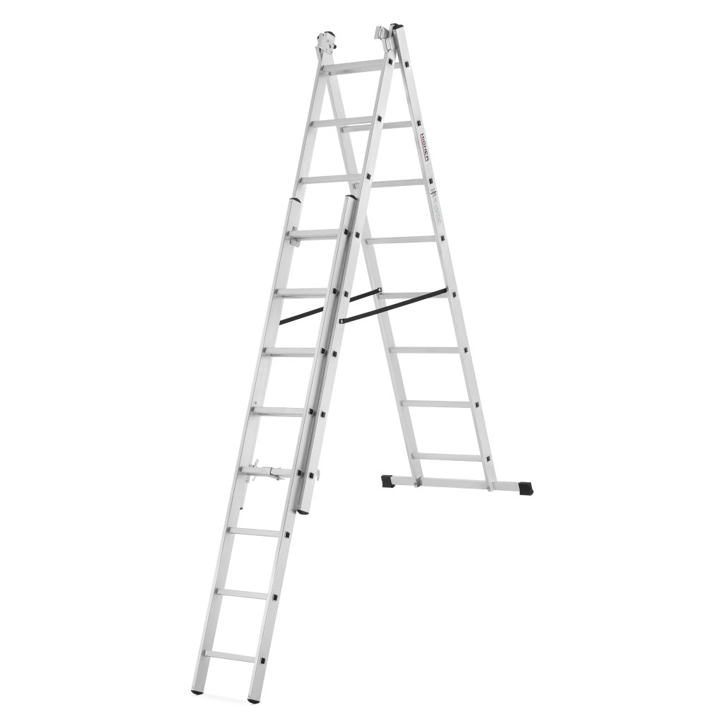 - Jako volně stojící žebřík: Stabilní "A" konstrukce pro vnitřní i venkovní práce bez nutnosti opory.