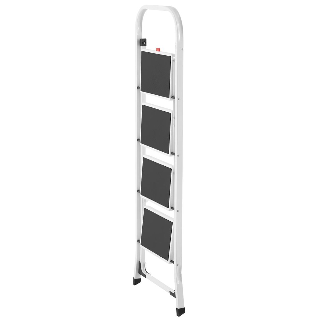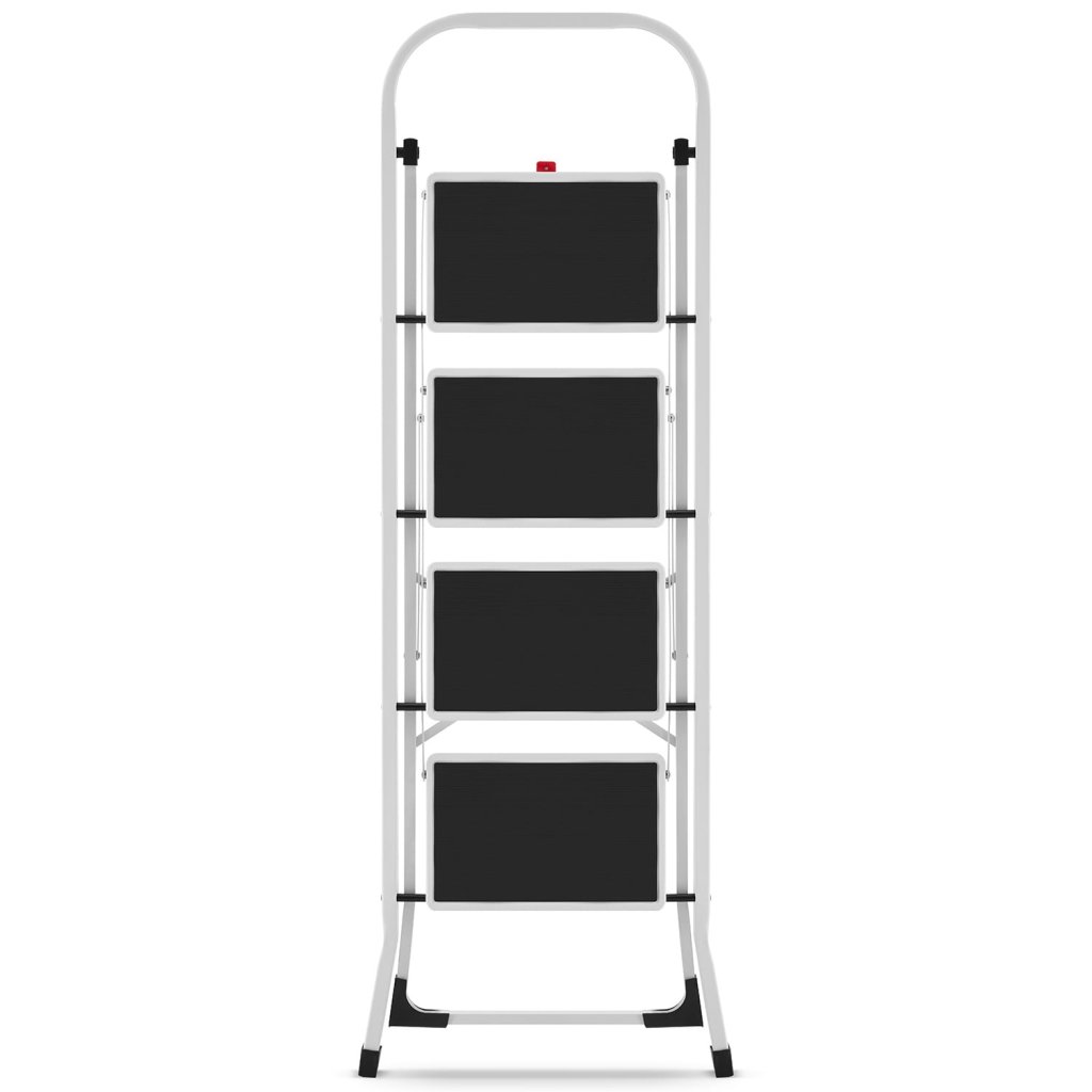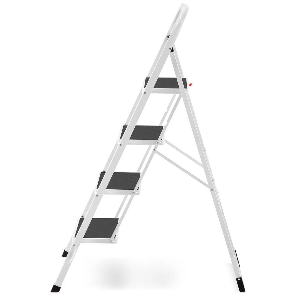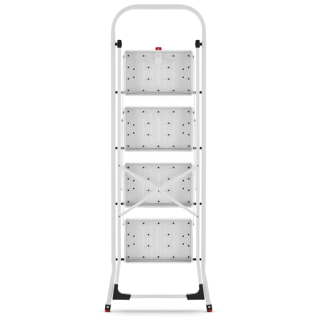HIGHER Ocelové skládací schůdky – 4 stupně, bílá barva