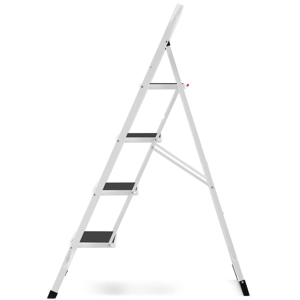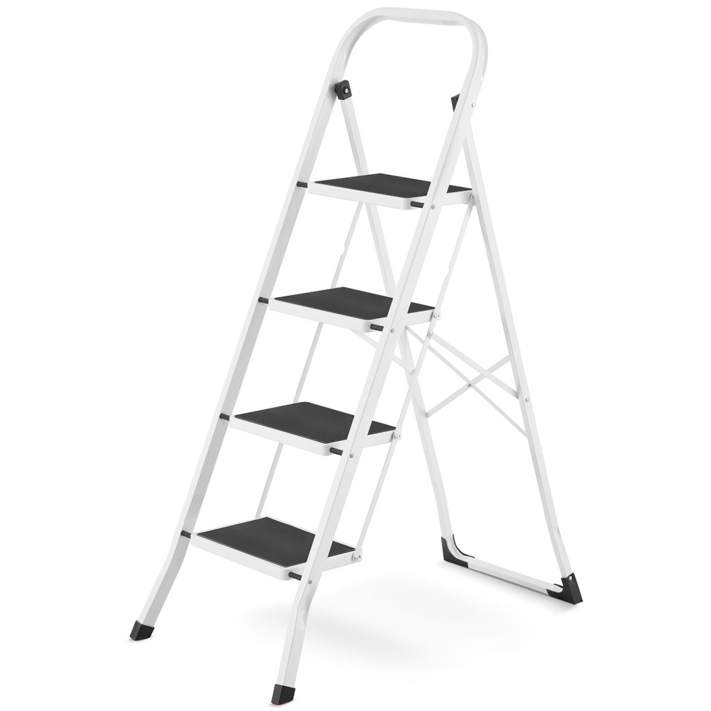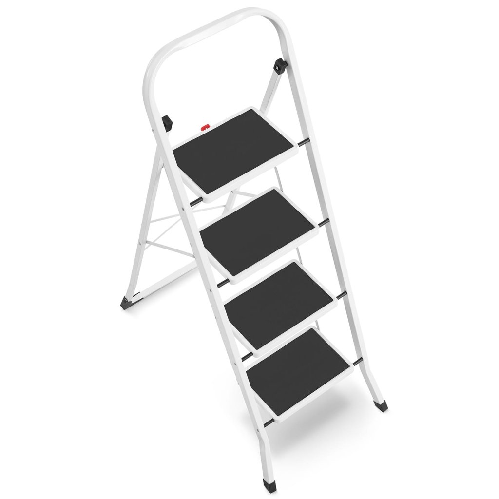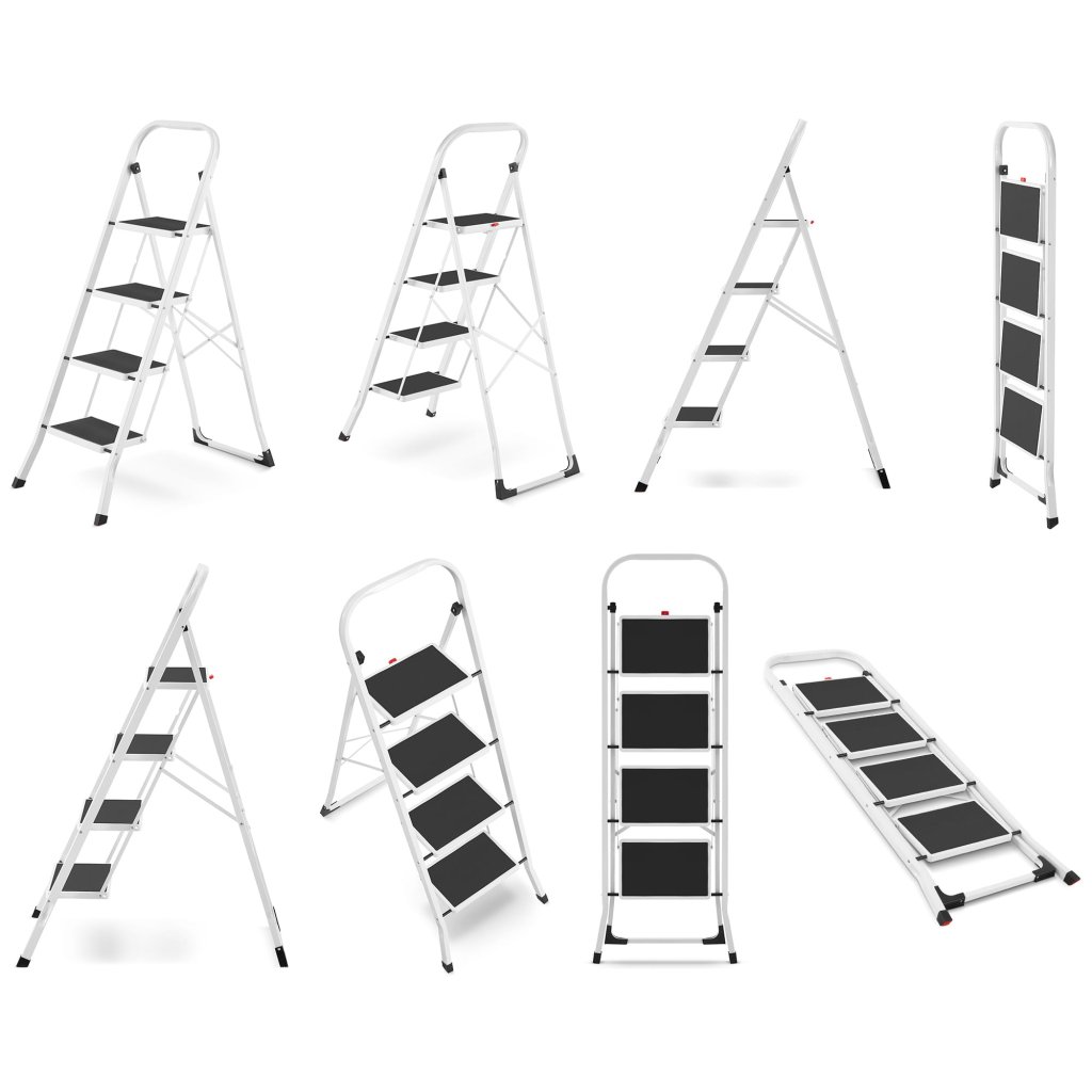 HIGHER Ocelové skládací schůdky – 4 stupně, bílá barva