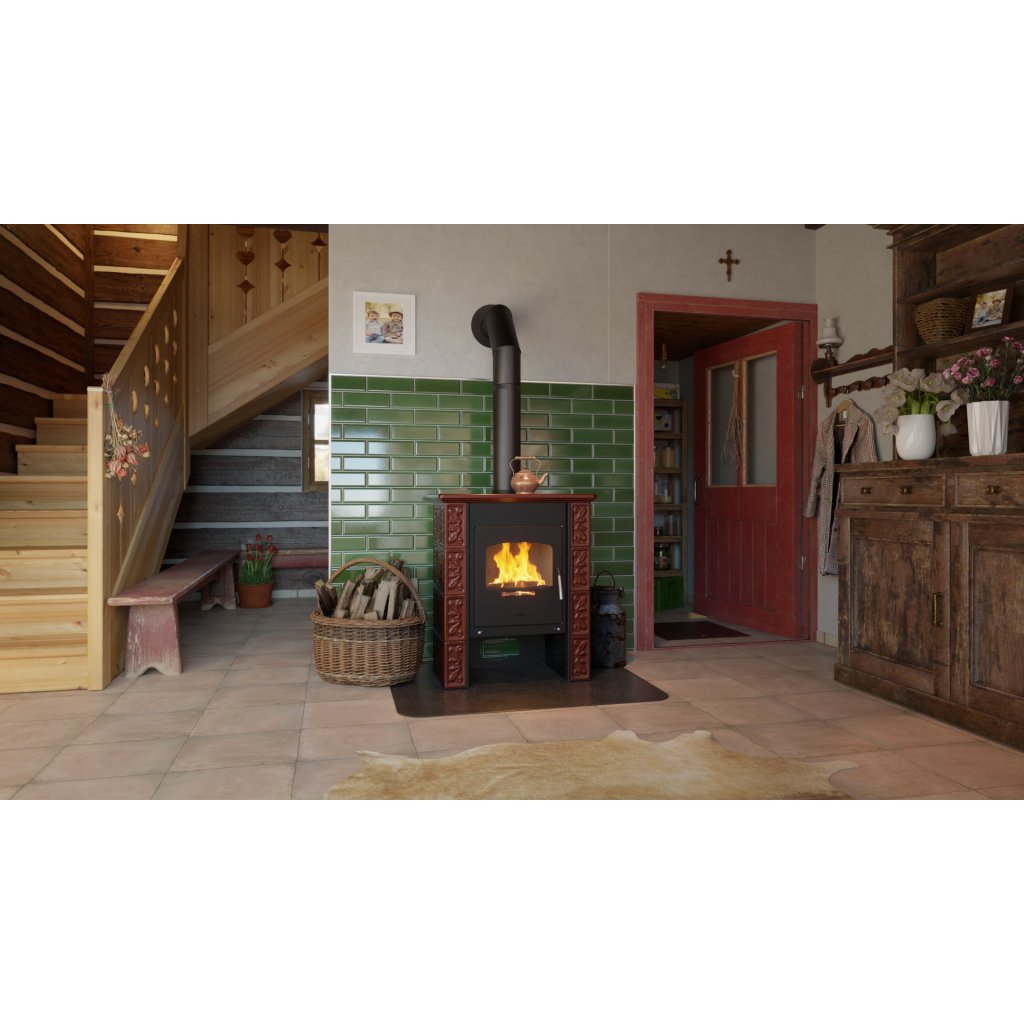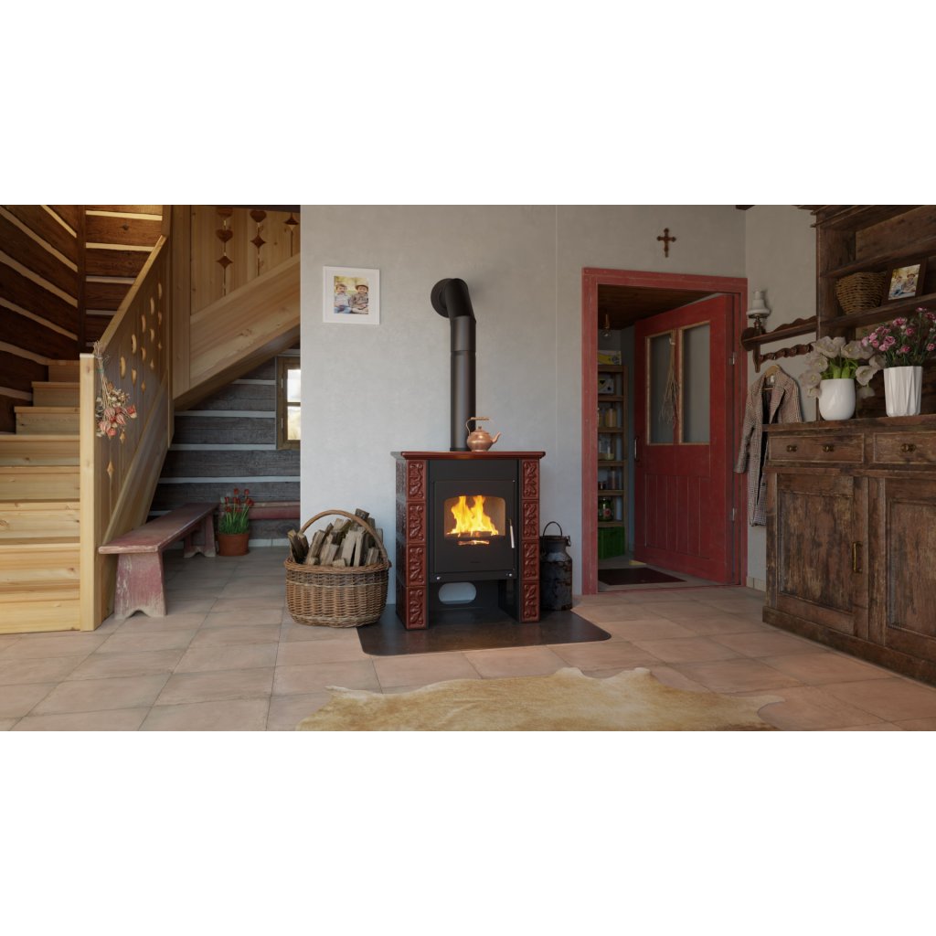 Šamot je základem pro vysokou účinnost a nízkou spotřebu paliva. Zajišťuje vysoké teploty ve spalovací komoře.