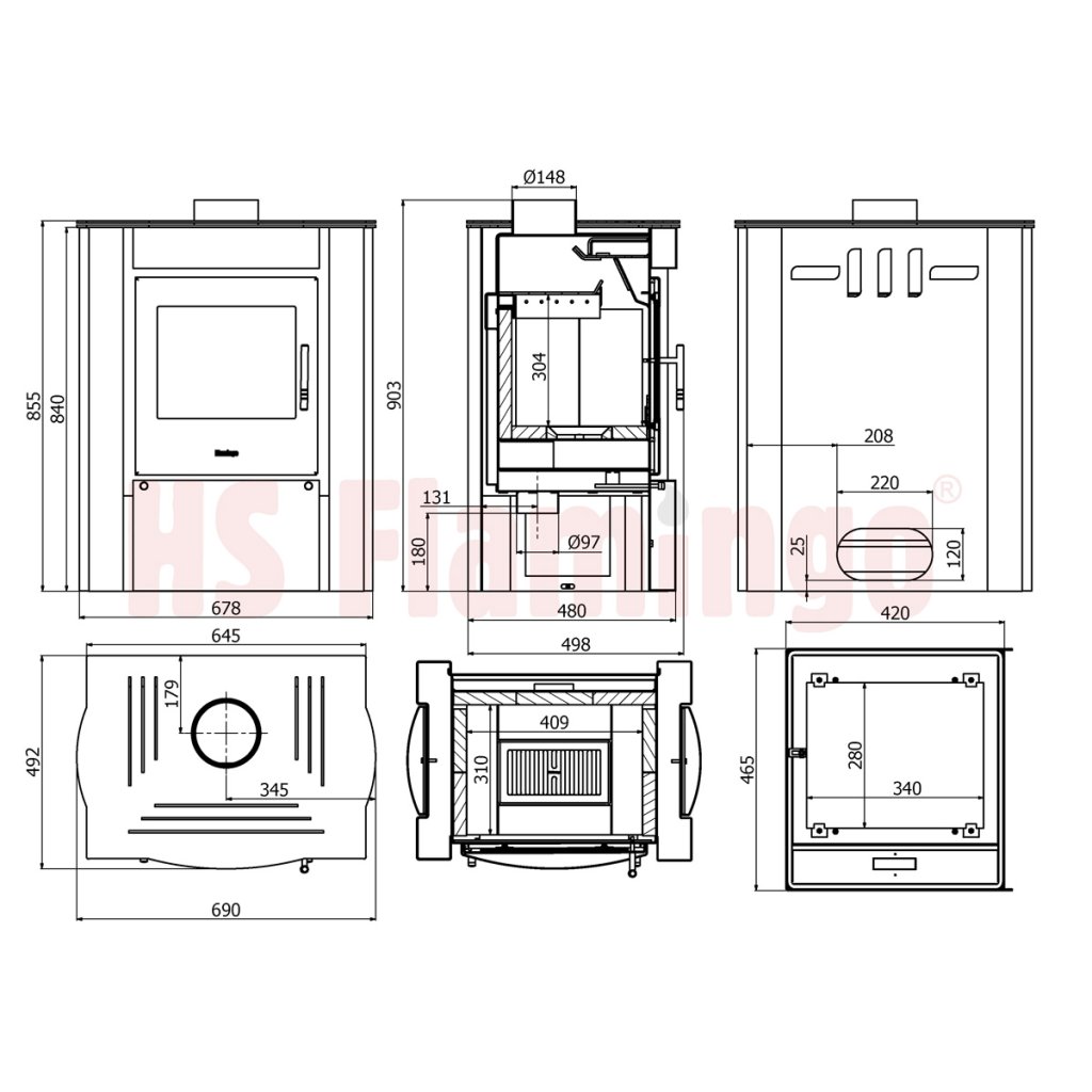 | Rozměr topeniště (Š x V x H): | 405 x 280 x 310 mm |