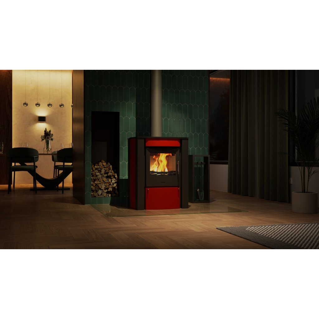 Krbová kamna HS Flamingo Amos červená jsou díky své vysoké kvalitě a velmi rozumné ceně velice žádaným artiklem teplovzdušných kamen na Českém i Evropském trhu. Krbová kamna HS Flamingo AMOS nabízejí standardní možnost externího napojení přívodu vzduchu. Pro co nejefektivnější spalování je přivedený vzduch dále rozdělen na primární (pod rošt), sekundární na oplach skla a terciální pro podporu spalování plynných částic. Komora je vykonstruovaná tak, aby byla dosažená vysoká účinnost a malá spotřeba paliva, která činí průměrně 2kg na hodinu. Vnitřek spalovacího prostoru tvoří český šamot a litinový rošt. Díky tomu je komora téměř nesmrtelná. Kamna jsou vyrobena z 3 a 5 mm plechu, kde 5mm plech je použit převážně na spalovací komoru. Díky tomu poskytujeme na krbová kamna záruku 5 let.