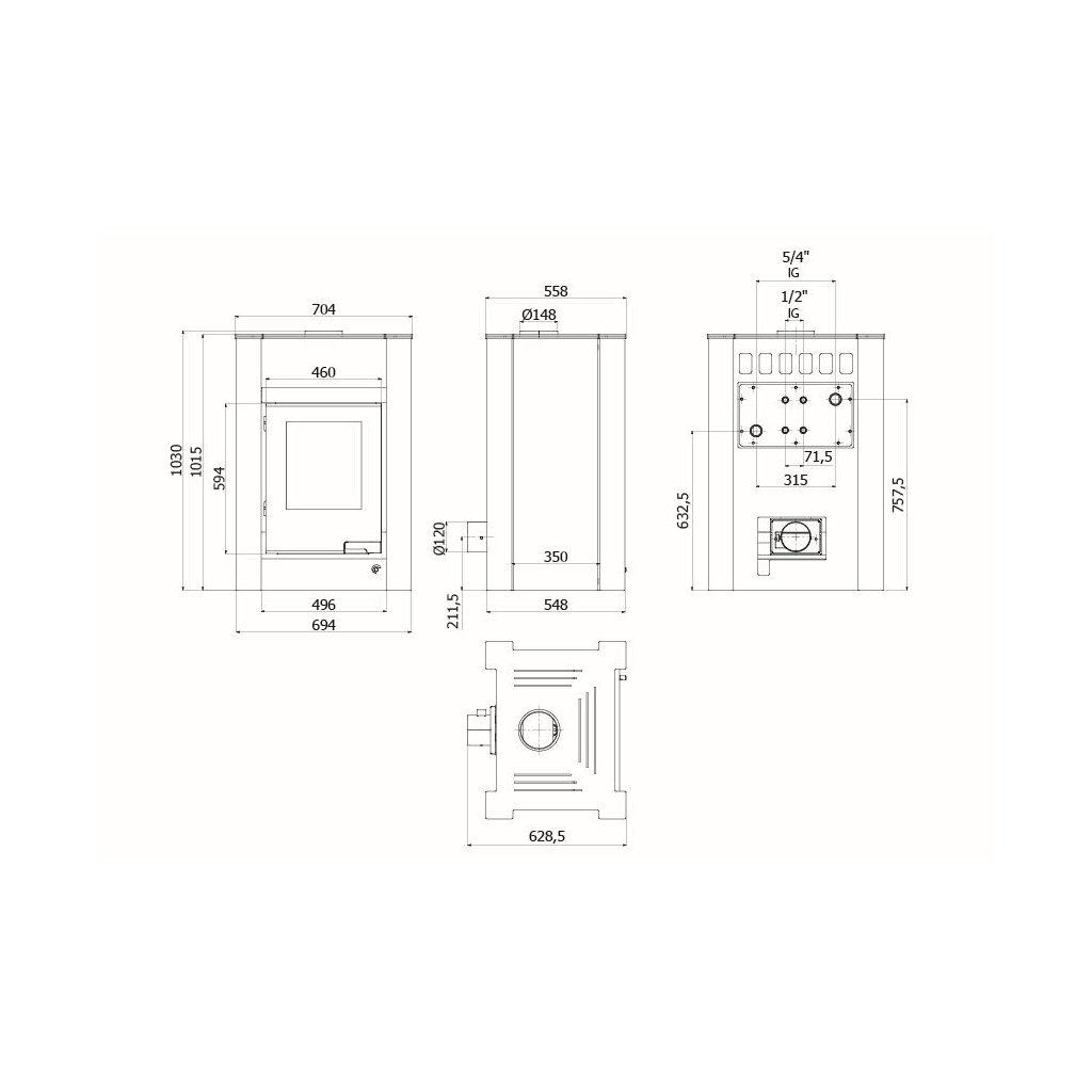- Výběr výkonu (Krbová kamna jsou standardně dodávána s teplovodním výměníkem. Zákazník má možnost výběru mezi dvěma výkony: 3 – 9 kW / 5 – 11kW.)