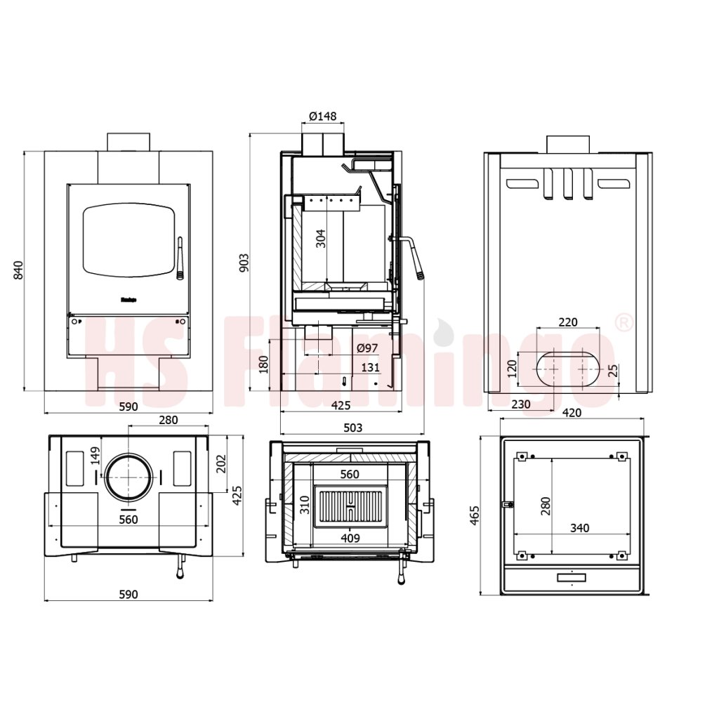 | Rozměr topeniště (Š x V x H): | 405 x 280 x 310 mm |