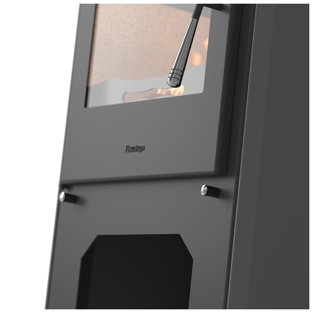 Komora je konstruovaná tak, aby byla dosažena vysoká účinnost a malá spotřeba paliva, která činí průměrně 2,5 kg na hodinu. Spalovací komora je vyrobená ze silného ocelového plechu a pro dokonalejší spalování je vysázena pravým šamotem. Sekundární spalování, krásně čisté sklo a externí přívod vzduchu je u kamen Flamingo samozřejmostí. Kamna jsou vyrobená z kvalitních materiálů a díky tomu Vám můžeme poskytnout záruku 5 let.