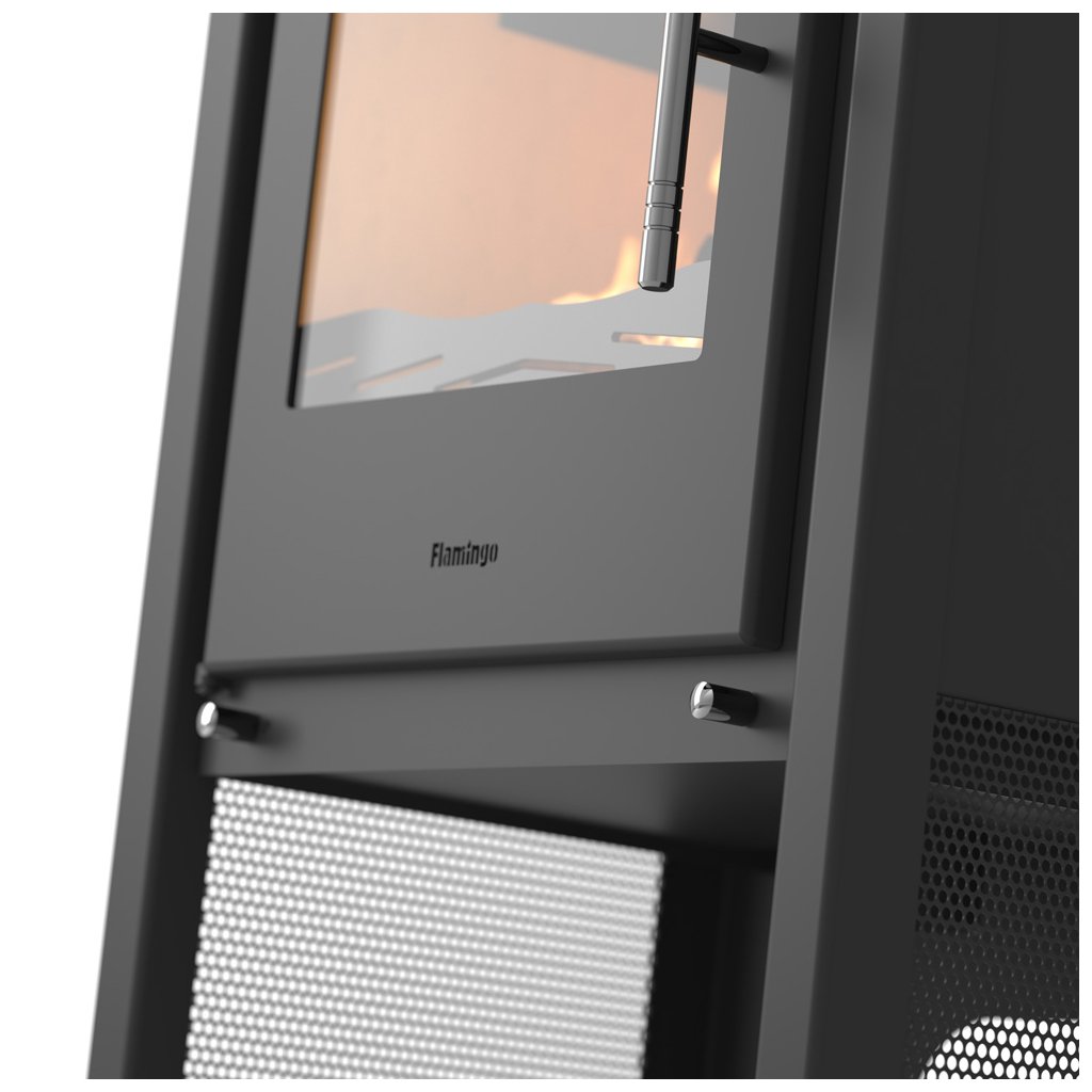 Krbová kamna HS Flamingo KUALA černá jsou díky své vysoké kvalitě a velmi rozumné ceně velice žádaným artiklem teplovzdušných kamen na Českém i Evropském trhu. Krbová kamna HS Flamingo nabízejí standardní možnost externího napojení přívodu vzduchu. Pro co nejefektivnější spalování je přivedený vzduch dále rozdělen na primární (pod rošt), sekundární na oplach skla a terciální pro podporu spalování plynných částic. Komora je vykonstruovaná tak, aby byla dosažená vysoká účinnost a malá spotřeba paliva, která činí průměrně 2kg na hodinu. Vnitřek spalovacího prostoru tvoří český šamot a litinový rošt. Díky tomu je komora téměř nesmrtelná. Kamna jsou vyrobena z 3 a 5 mm plechu, kde 5mm plech je použit převážně na spalovací komoru. Díky tomu poskytujeme na krbová kamna záruku 5 let.