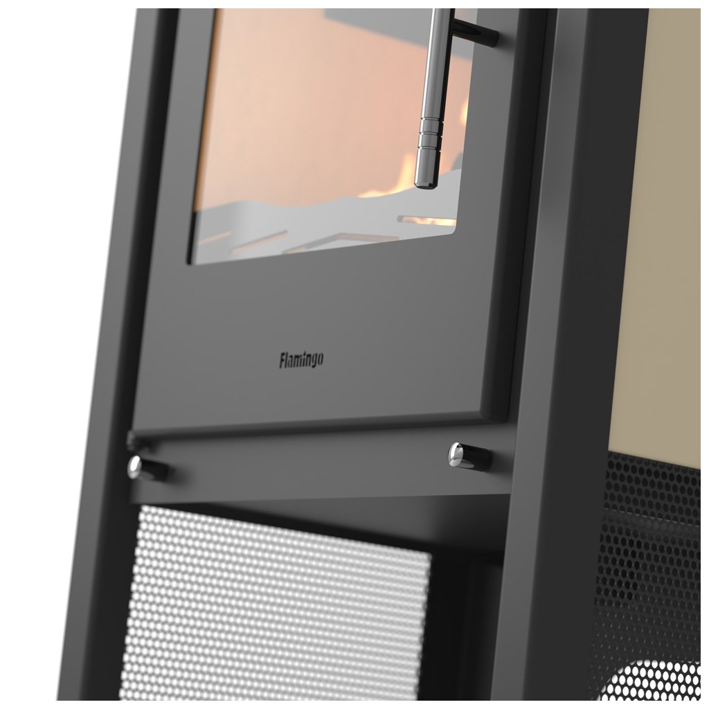 Krbová kamna HS Flamingo KUALA krémová jsou díky své vysoké kvalitě a velmi rozumné ceně velice žádaným artiklem teplovzdušných kamen na Českém i Evropském trhu. Krbová kamna HS Flamingo nabízejí standardní možnost externího napojení přívodu vzduchu. Pro co nejefektivnější spalování je přivedený vzduch dále rozdělen na primární (pod rošt), sekundární na oplach skla a terciální pro podporu spalování plynných částic. Komora je vykonstruovaná tak, aby byla dosažená vysoká účinnost a malá spotřeba paliva, která činí průměrně 2kg na hodinu. Vnitřek spalovacího prostoru tvoří český šamot a litinový rošt. Díky tomu je komora téměř nesmrtelná. Kamna jsou vyrobena z 3 a 5 mm plechu, kde 5mm plech je použit převážně na spalovací komoru. Díky tomu poskytujeme na krbová kamna záruku 5 let.