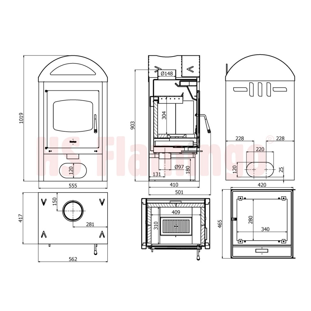 Rozměr topeniště (Š x V x H): | 405 x 280 x 310 mm |