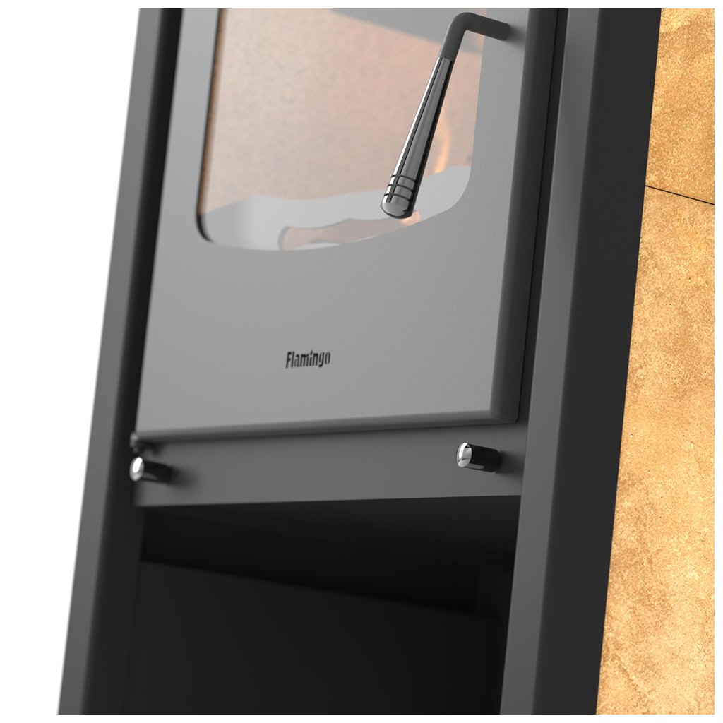 Krbová kamna HS Flamingo MELAND jsou díky své vysoké kvalitě a velmi rozumné ceně velice žádaným artiklem teplovzdušných kamen na Českém i Evropském trhu. Krbová kamna HS Flamingo nabízejí standardní možnost externího napojení přívodu vzduchu. Pro co nejefektivnější spalování je přivedený vzduch dále rozdělen na primární (pod rošt), sekundární na oplach skla a terciální pro podporu spalování plynných částic. Komora je vykonstruovaná tak, aby byla dosažená vysoká účinnost a malá spotřeba paliva, která činí průměrně 2kg na hodinu. Vnitřek spalovacího prostoru tvoří český šamot a litinový rošt. Díky tomu je komora téměř nesmrtelná. Kamna jsou vyrobena z 3 a 5 mm plechu, kde 5mm plech je použit převážně na spalovací komoru. Díky tomu poskytujeme na krbová kamna záruku 5 let.