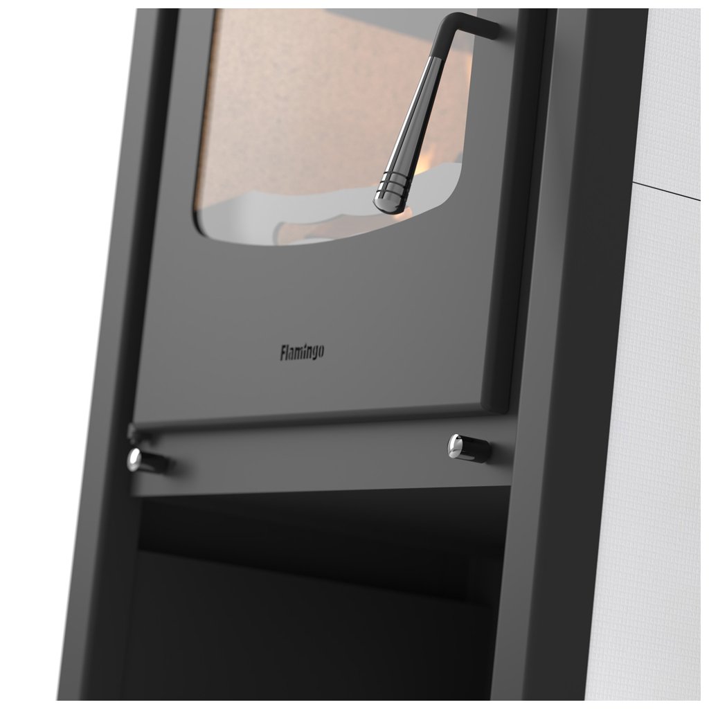 Krbová kamna HS Flamingo MELAND jsou díky své vysoké kvalitě a velmi rozumné ceně velice žádaným artiklem teplovzdušných kamen na Českém i Evropském trhu. Krbová kamna HS Flamingo nabízejí standardní možnost externího napojení přívodu vzduchu. Pro co nejefektivnější spalování je přivedený vzduch dále rozdělen na primární (pod rošt), sekundární na oplach skla a terciální pro podporu spalování plynných částic. Komora je vykonstruovaná tak, aby byla dosažená vysoká účinnost a malá spotřeba paliva, která činí průměrně 2kg na hodinu. Vnitřek spalovacího prostoru tvoří český šamot a litinový rošt. Díky tomu je komora téměř nesmrtelná. Kamna jsou vyrobena z 3 a 5 mm plechu, kde 5mm plech je použit převážně na spalovací komoru. Díky tomu poskytujeme na krbová kamna záruku 5 let.