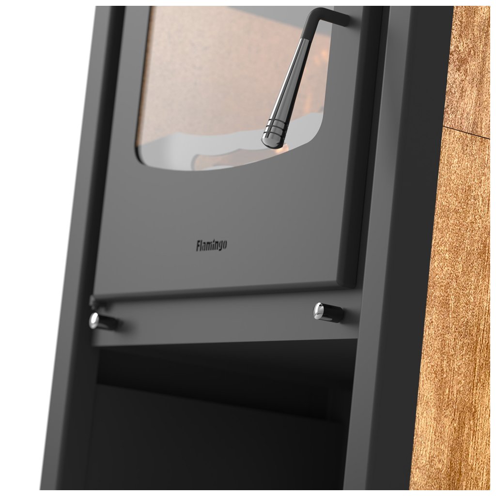 Krbová kamna HS Flamingo VEGA jsou díky své vysoké kvalitě a velmi rozumné ceně velice žádaným artiklem teplovzdušných kamen na Českém i Evropském trhu. Krbová kamna HS Flamingo nabízejí standardní možnost externího napojení přívodu vzduchu. Pro co nejefektivnější spalování je přivedený vzduch dále rozdělen na primární (pod rošt), sekundární na oplach skla a terciální pro podporu spalování plynných částic. Komora je vykonstruovaná tak, aby byla dosažená vysoká účinnost a malá spotřeba paliva, která činí průměrně 2kg na hodinu. Vnitřek spalovacího prostoru tvoří český šamot a litinový rošt. Díky tomu je komora téměř nesmrtelná. Kamna jsou vyrobena z 3 a 5 mm plechu, kde 5mm plech je použit převážně na spalovací komoru. Díky tomu poskytujeme na krbová kamna záruku 5 let.