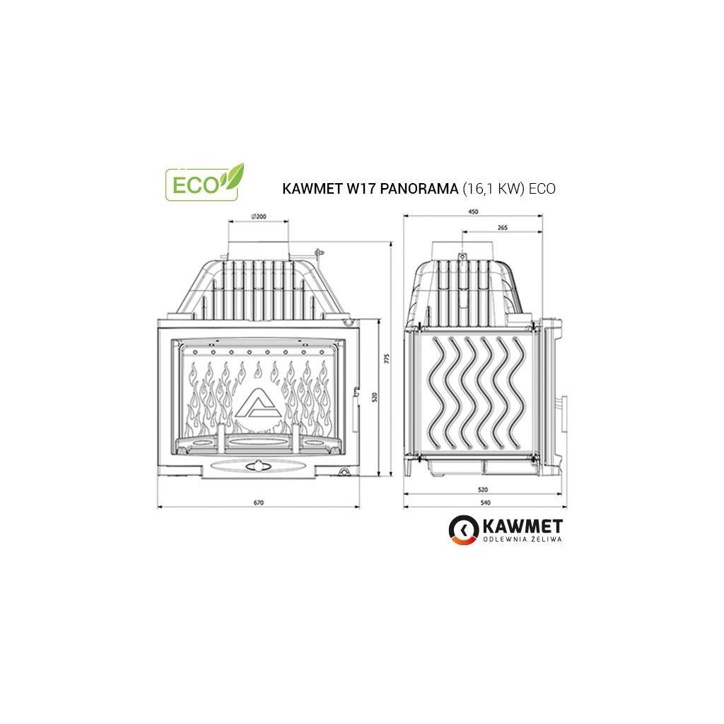 Teplovzdušná krbová vložka KAWMET W17 Panorama ECO je moderní krb, který funguje na principu konvekce. Krbová vložka na dřevo, se stane nejen ozdobou interiéru, ale zahřeje celý dům a poskytne příjemnou teplotu v chladném období.