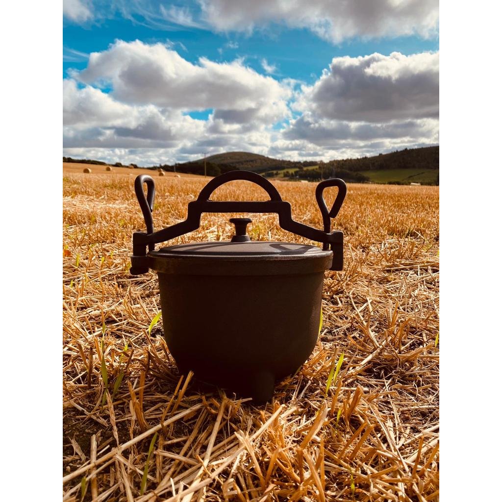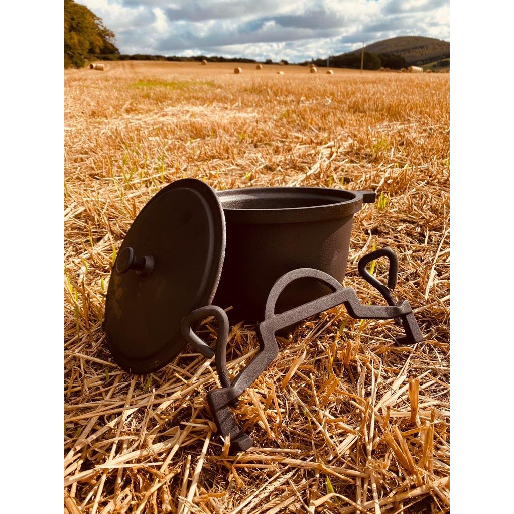 Lovecký kotel vyrobený z vysoce kvalitní litiny v Polsku, pečlivě dokončený a vypálený při vysoké teplotě, což ovlivňuje jeho odolnost a klimatické faktory. Litina se rychle zahřívá a zajišťuje rovnoměrné rozložení teploty, takže v krátké době připravíte chutné a teplé pokrmy, které budou měkké a křupavé.