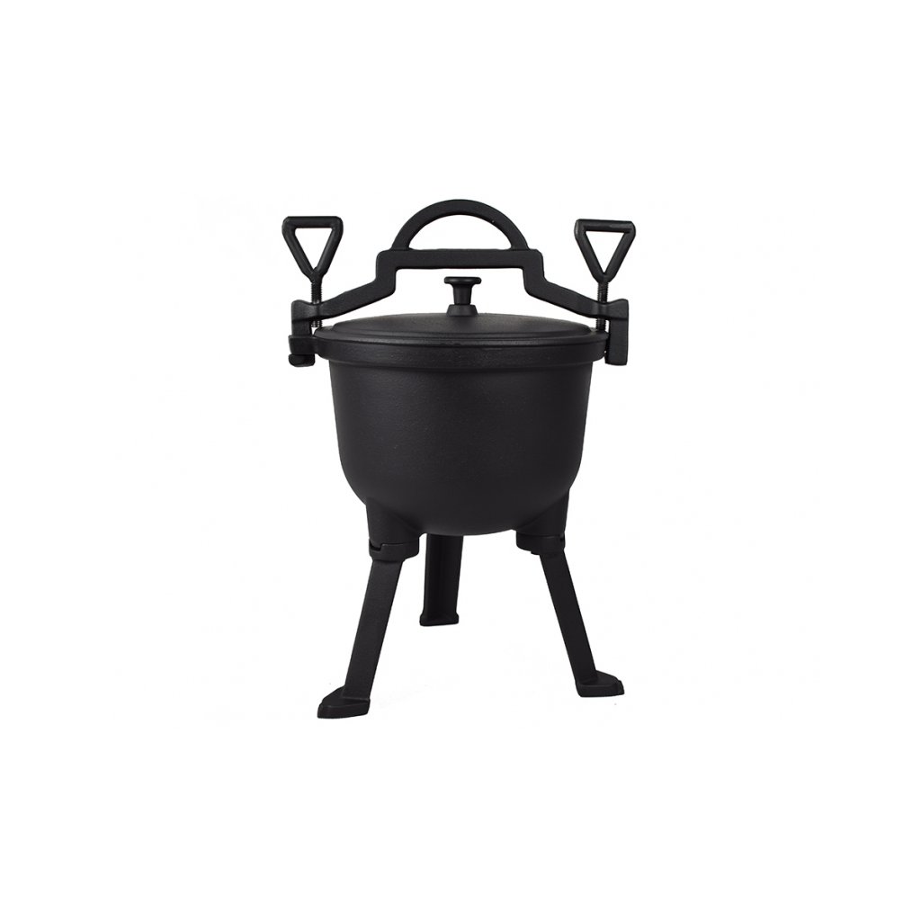 Lovecký kotel vyrobený z vysoce kvalitní litiny v Polsku, pečlivě dokončený a vypálený při vysoké teplotě, což ovlivňuje jeho odolnost a klimatické faktory. Litina se rychle zahřívá a zajišťuje rovnoměrné rozložení teploty, takže v krátké době připravíte chutné a teplé pokrmy, které budou měkké a křupavé.