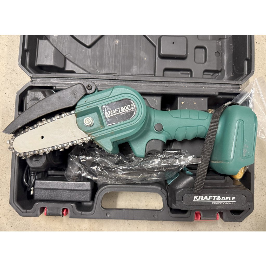 Mini akumulátorová pila Kraft&Dele model KD10622 je skvělým pomocníkem pro řezání stromů, větví a další zahradní práce. Díky své lehké váze a ergonomickému designu je velmi snadno ovladatelná a pomáhá vám šetřit čas a úsilí.