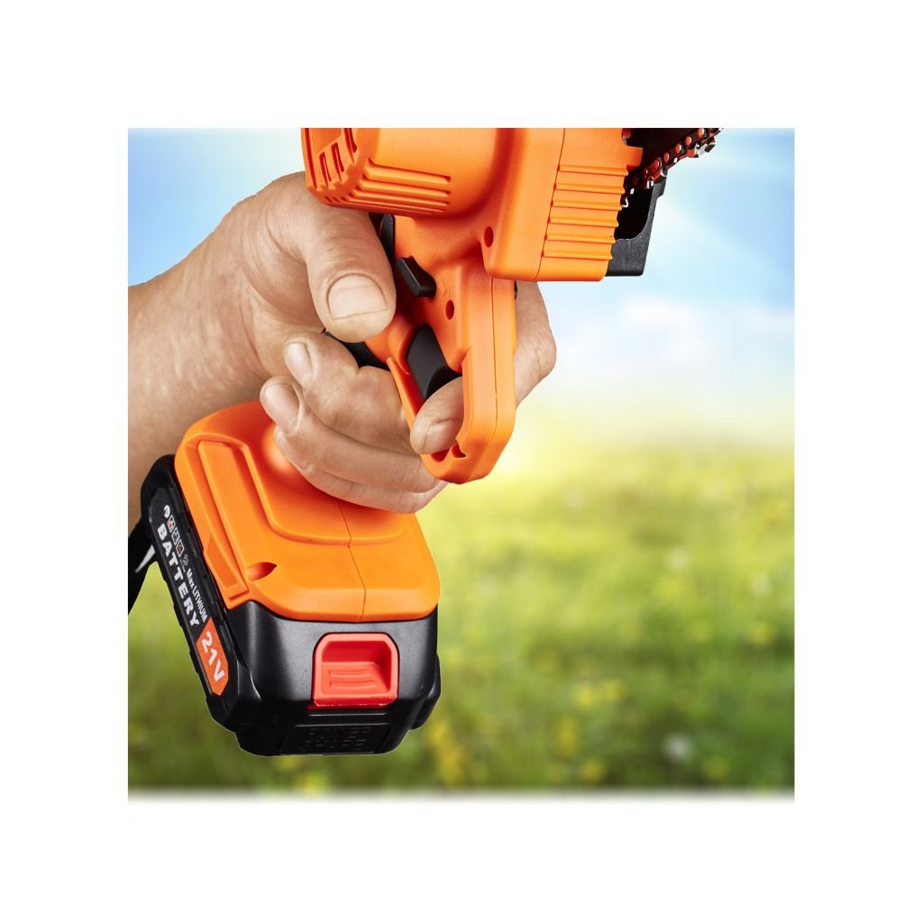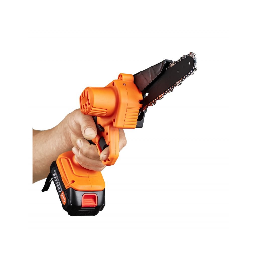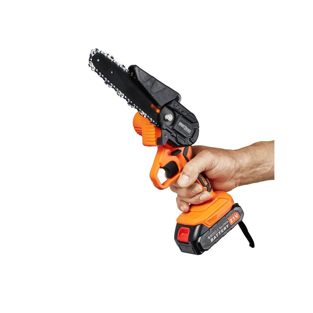 Mini akumulátorová pila Kraft&Dele model KD10626 je skvělým pomocníkem pro řezání stromů, větví a další zahradní práce. Díky své lehké váze a ergonomickému designu je velmi snadno ovladatelná a pomáhá vám šetřit čas a úsilí.