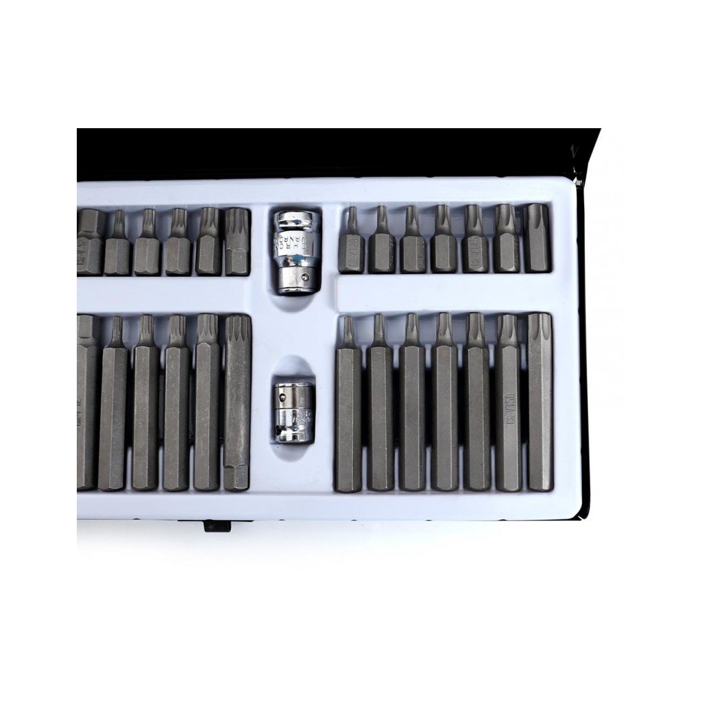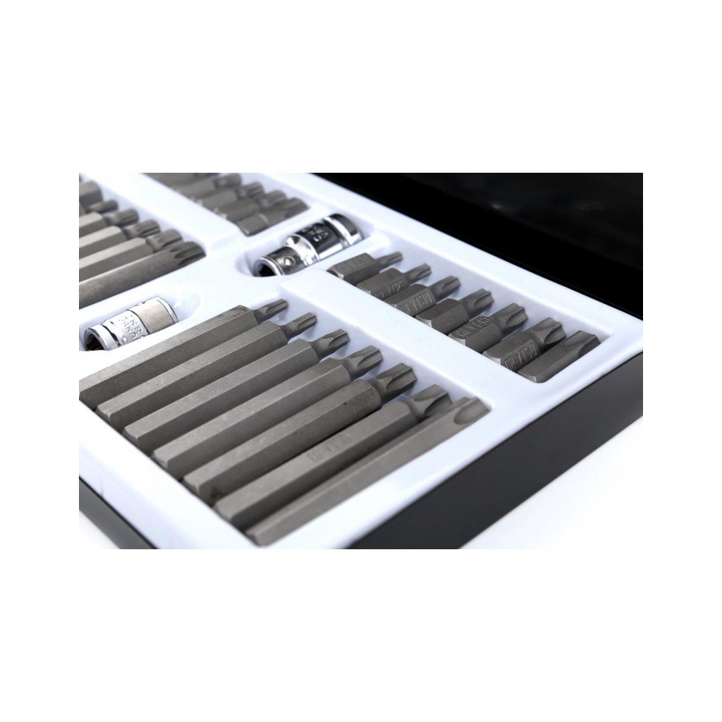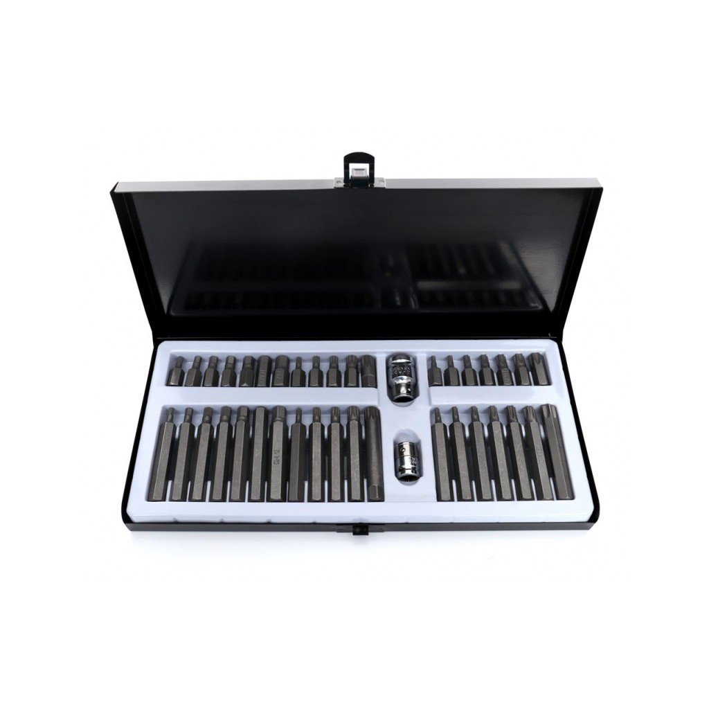 Komplet sada speciálních nástavců a bitů HEX, TORX, SPLINE 40 dílů Kraft&Dele je vysoce kvalitní sada nástrojů, která obsahuje širokou škálu bitů pro různé typy šroubů. Tento set je ideální pro profesionální použití v dílnách, garážích a pro domácí kutily. Bity jsou vyrobeny z vysoce odolné oceli, která zaručuje dlouhou životnost a vysokou efektivitu práce.