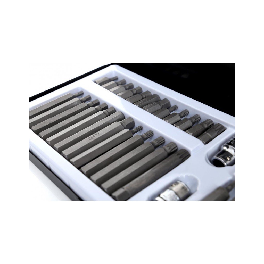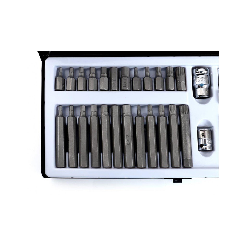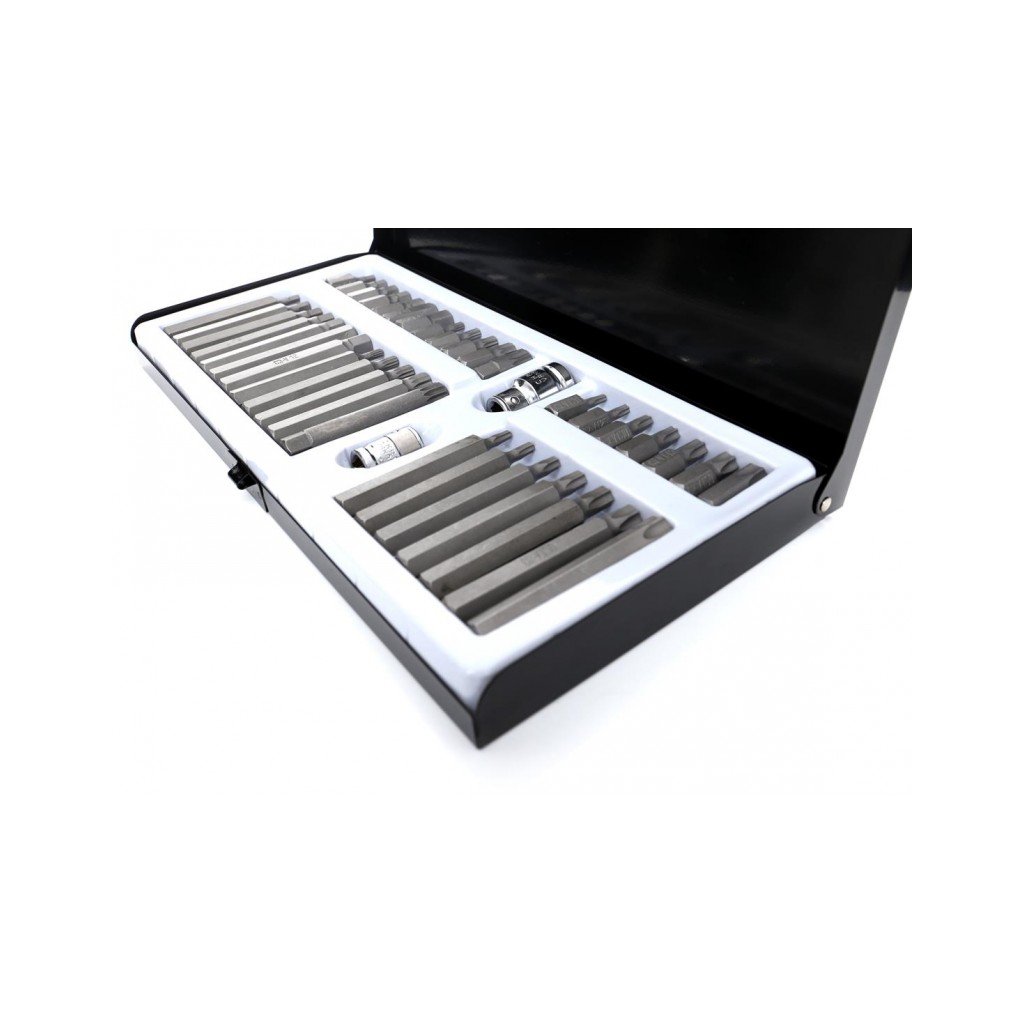 Komplet sada speciálních nástavců a bitů HEX, TORX, SPLINE 40 dílů Kraft&Dele je vysoce kvalitní sada nástrojů, která obsahuje širokou škálu bitů pro různé typy šroubů. Tento set je ideální pro profesionální použití v dílnách, garážích a pro domácí kutily. Bity jsou vyrobeny z vysoce odolné oceli, která zaručuje dlouhou životnost a vysokou efektivitu práce.