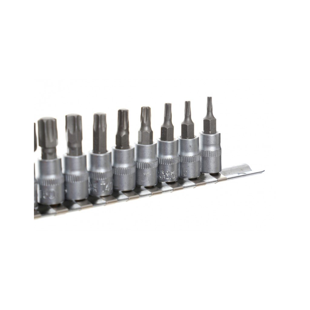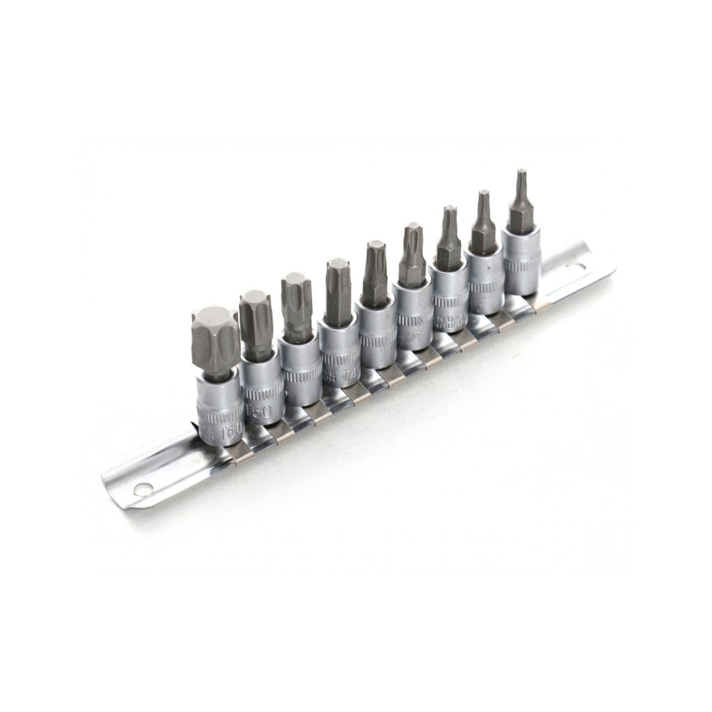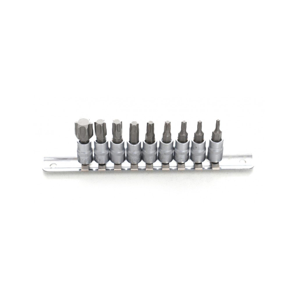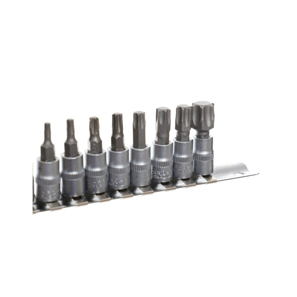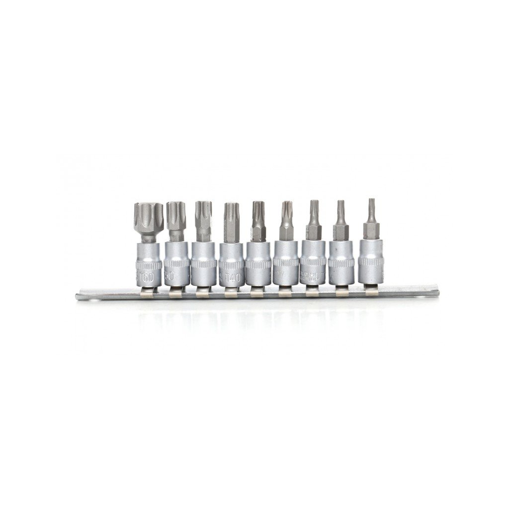 Sada hlavic 1/4" 9díl. Kraft&Dele KD10241 je vysoce kvalitní sada bitů, která obsahuje 9 dílů pro práci s různými velikostmi šroubů. Tento set je ideální pro kutily, mechaniky a profesionály, kteří potřebují široký výběr bitů pro šrouby velikostí T10, T15, T20, T27, T30, T40, T45, T50 a T60. Díky chromované vandanové oceli je sada odolná a má dlouhou životnost.