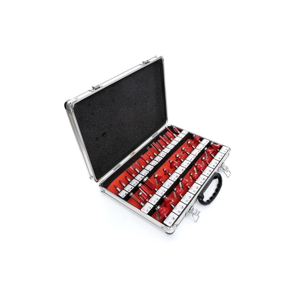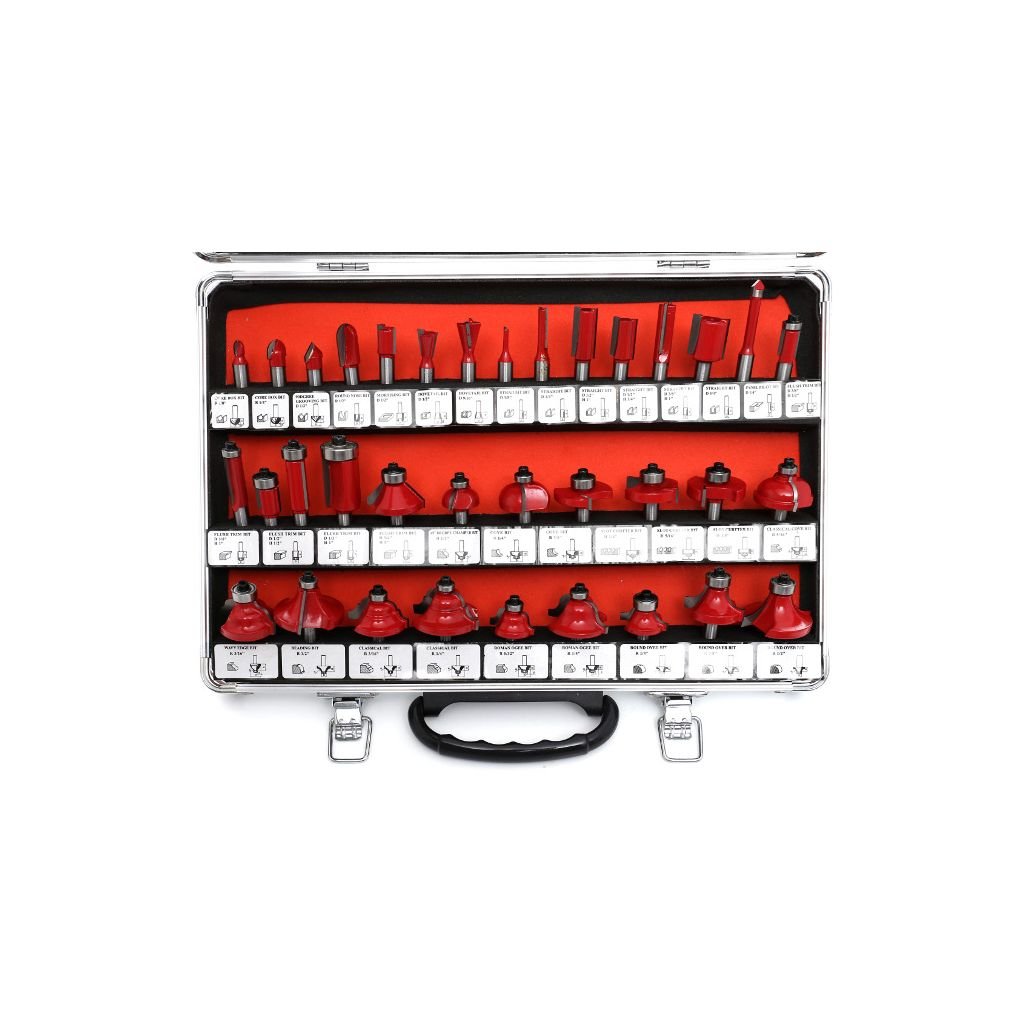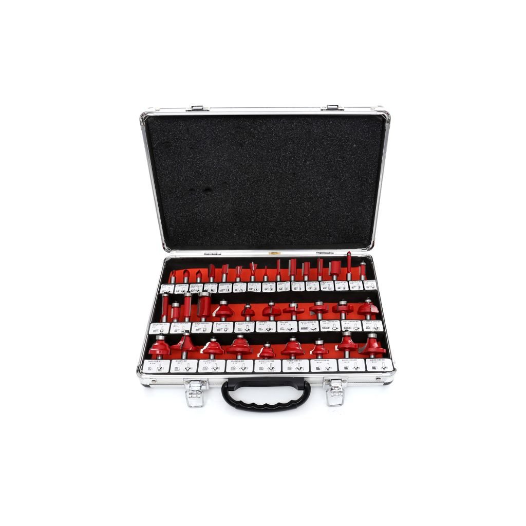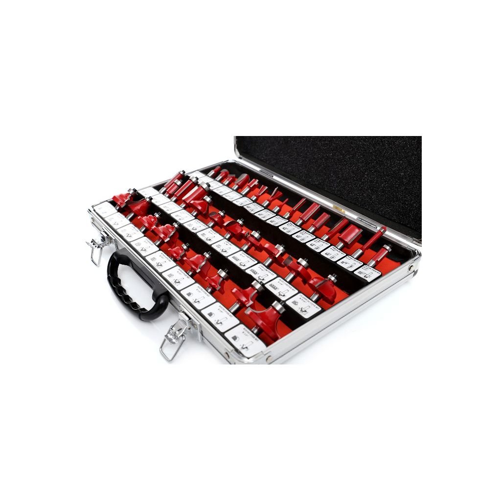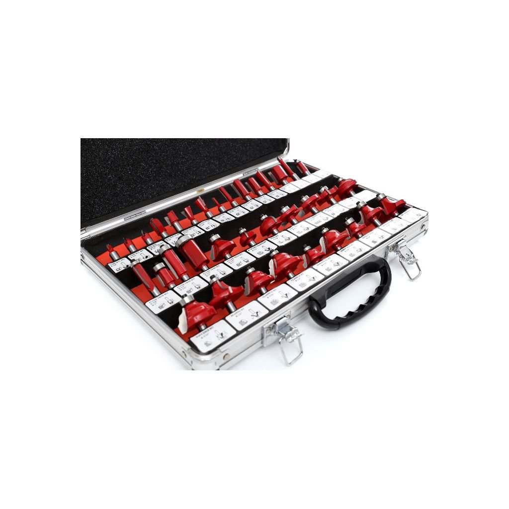 Sada fréz je v profesionálním kufru, každá z fréz má své vlastní popsané místo