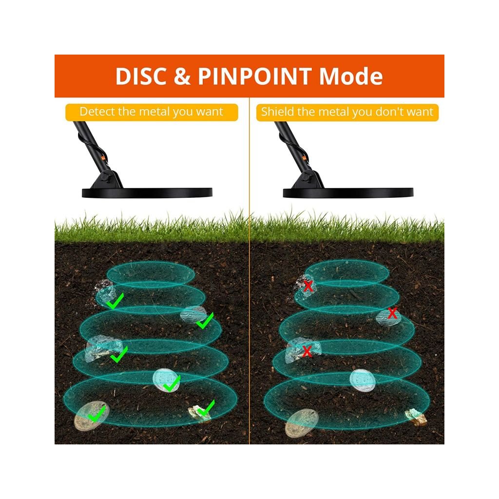 - tato funkce umožňuje detektoru rozlišovat typy kovů a přesně rozlišovat mezi železnými a neželeznými kovy (zlato, stříbro, měď, hliník, zinek, olovo, platina)