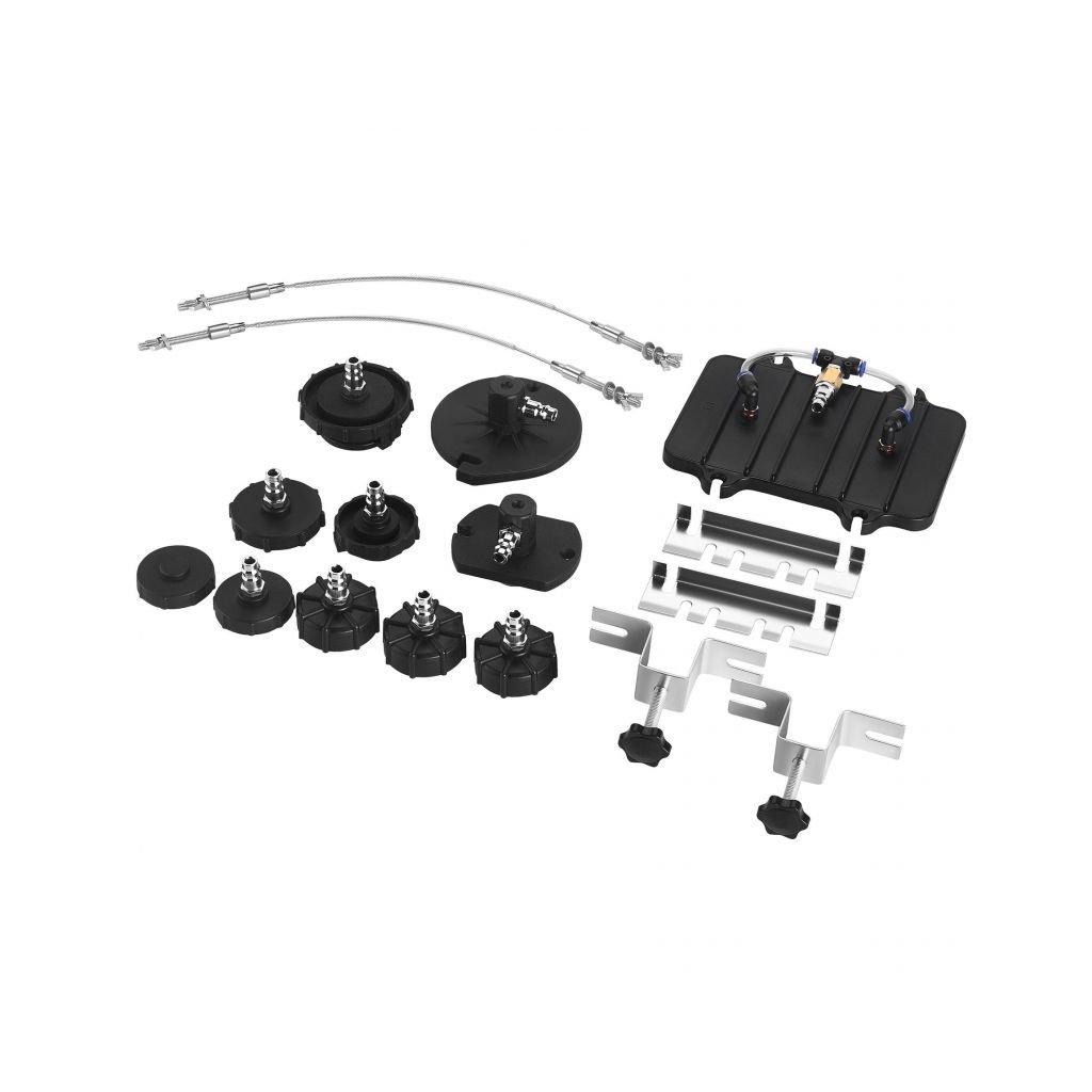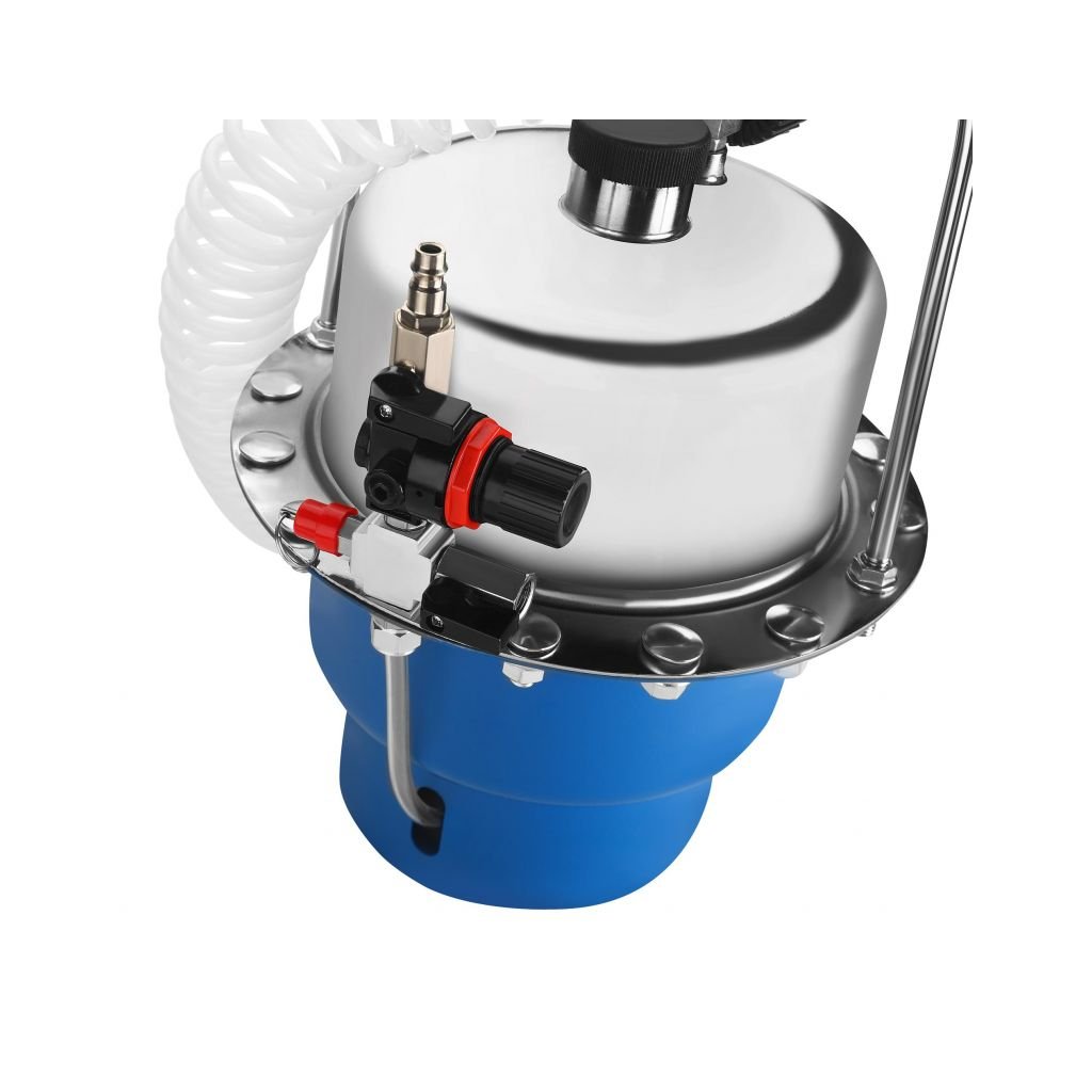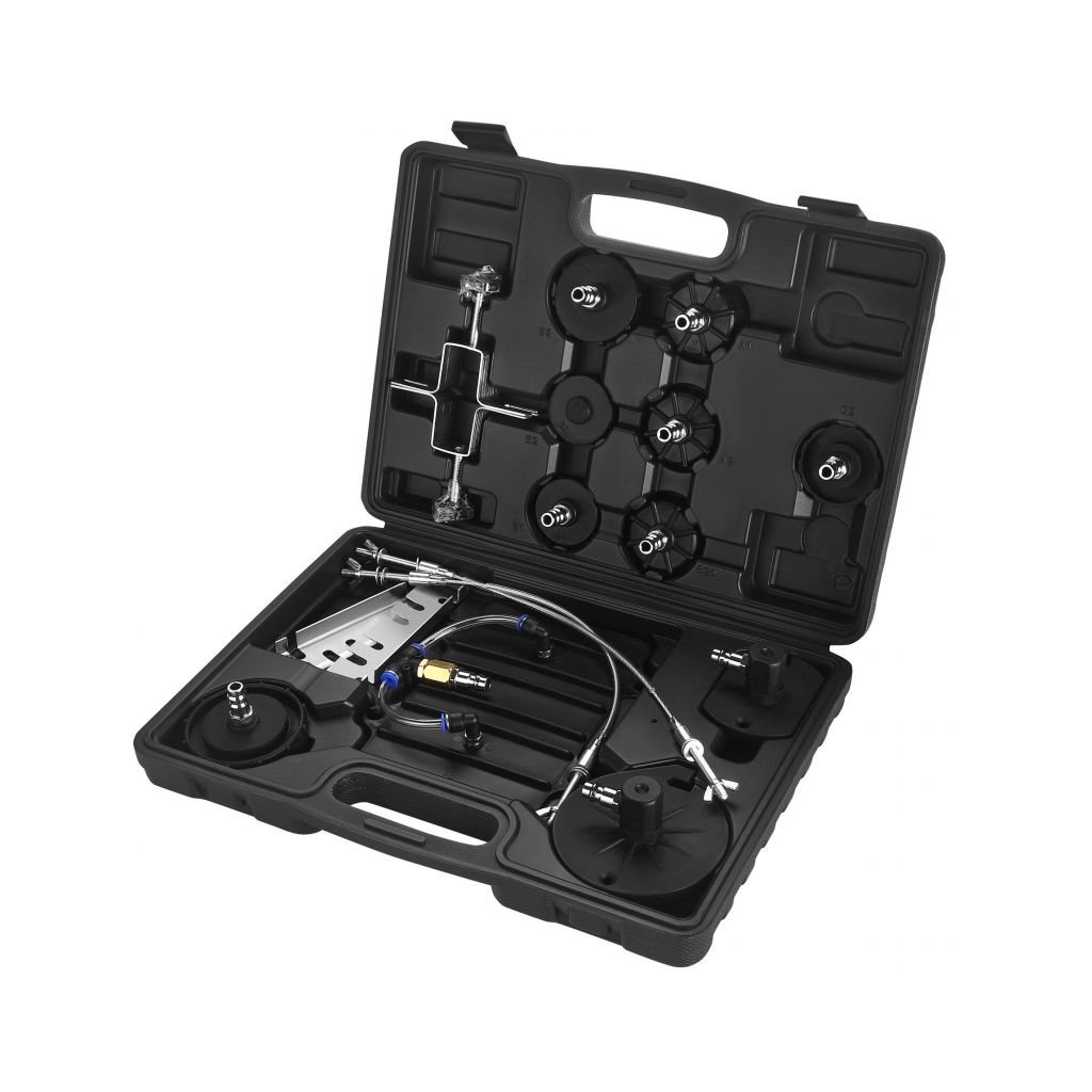 Univerzální použití, odolná konstrukce (hliník + pevný plast) a dlouhá 5,2m hadice usnadňují práci v dílně i v garáži. Pracovní tlak 10–40 PSI (0,69–2,76 bar) a spotřeba vzduchu 4,5 CFM zajišťují stabilní podtlak pro rychlé a čisté odvzdušnění.