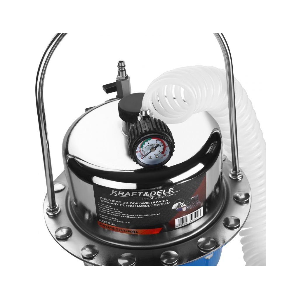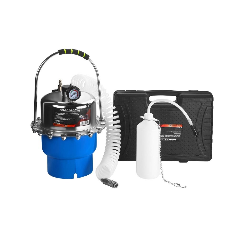 Profesionální podtlaková (pneumatická) pumpa KD5934 urychlí a zjednoduší odvzdušnění i kompletní výměnu brzdové či spojkové kapaliny u osobních i dodávkových vozů a motocyklů. Díky provozu na stlačený vzduch pracuje rychle, umožňuje obsluhu jednou osobou a minimalizuje nepořádek – průhledná hadice umožní kontrolu bublin a 5l nádrž bezpečně zachytí starou kapalinu.