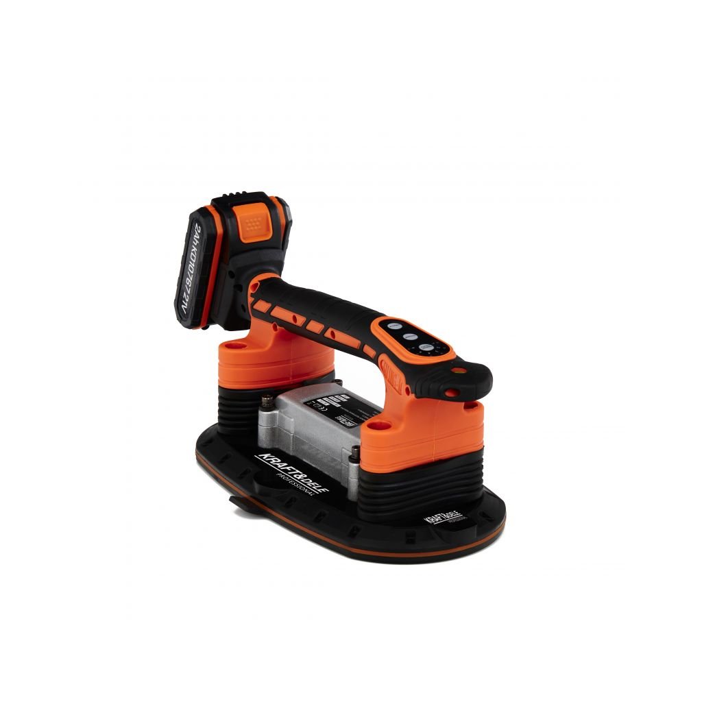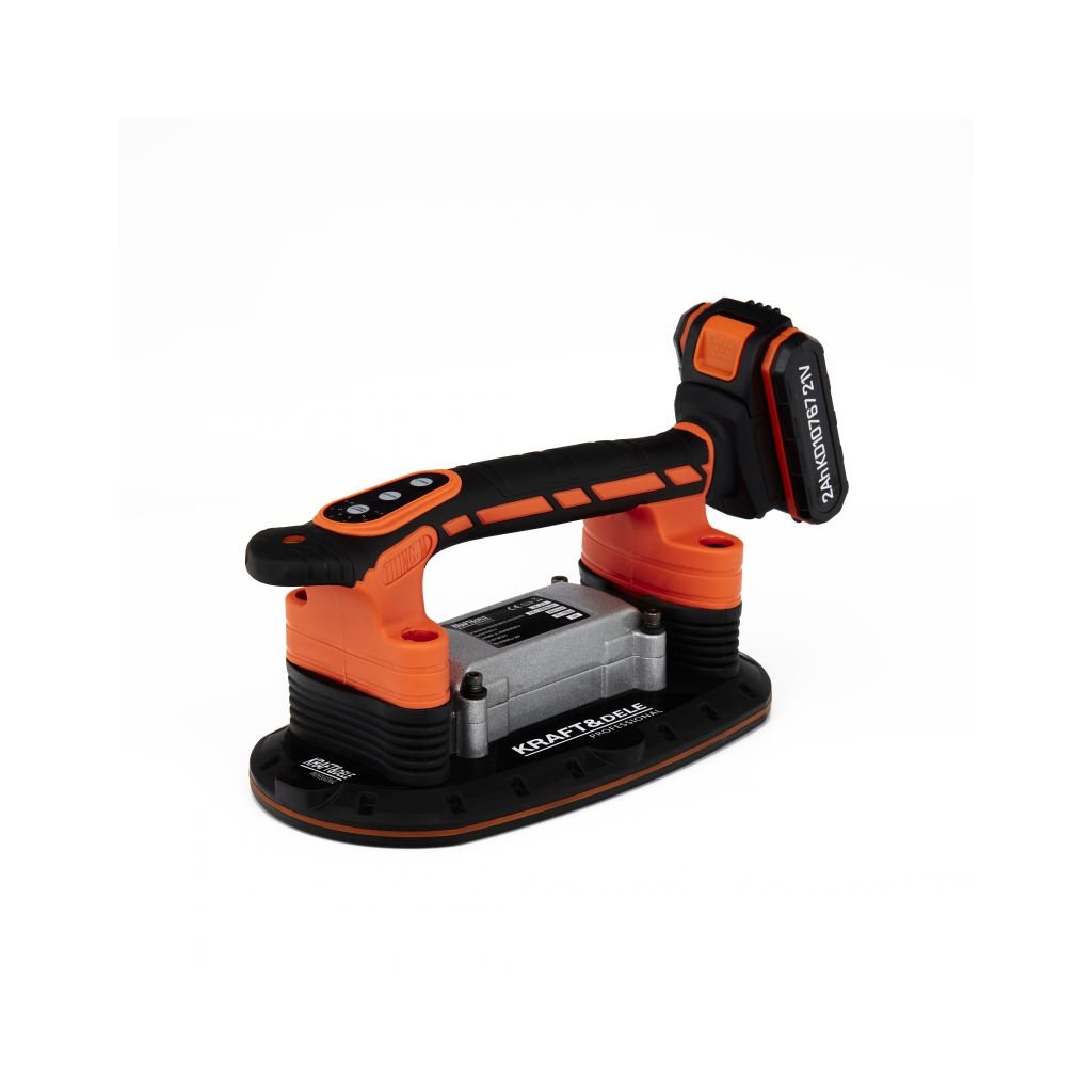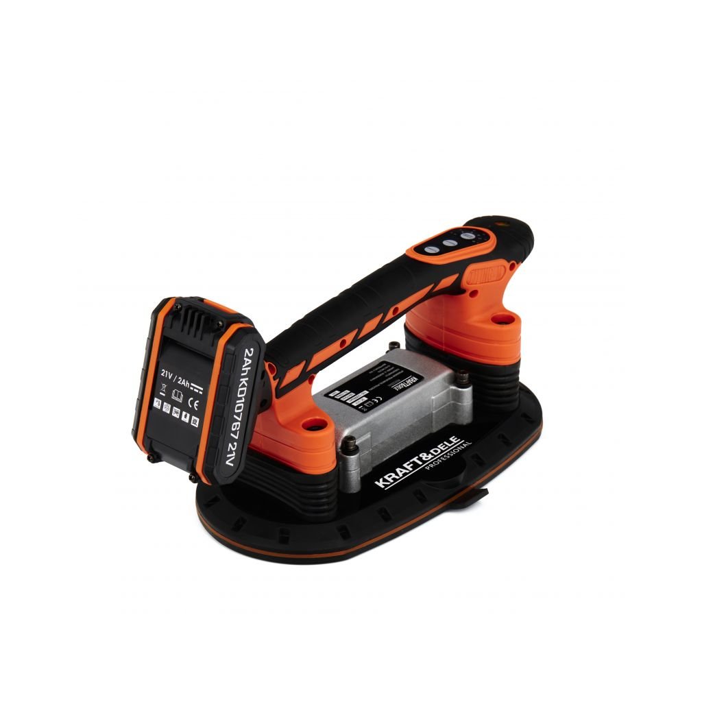 Akumulátorová vibrační přísavka KD10767 značky Kraft&Dele je ideální nástroj pro snadnou manipulaci s dlaždicemi a jinými materiály. Díky sací síle až 150 kg umožňuje bezpečné a přesné pokládání dlaždic. Vibrační funkce eliminuje vzduchové bubliny, které mohou způsobit nerovnosti nebo praskliny.