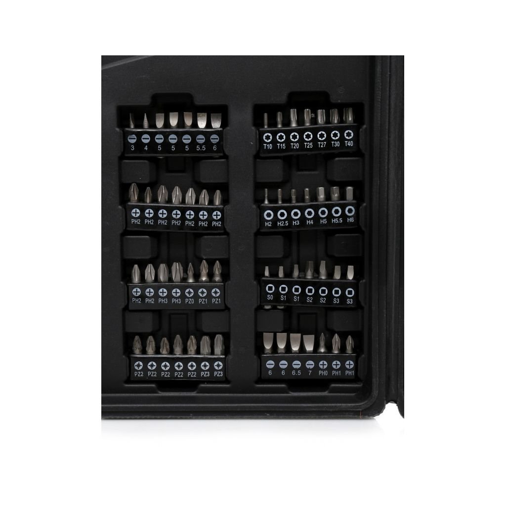 - Bity: 11 plochých, 14 křížových, 7 TORX, 7 šestihranných, 7 čtvercových, 10 hvězdicových