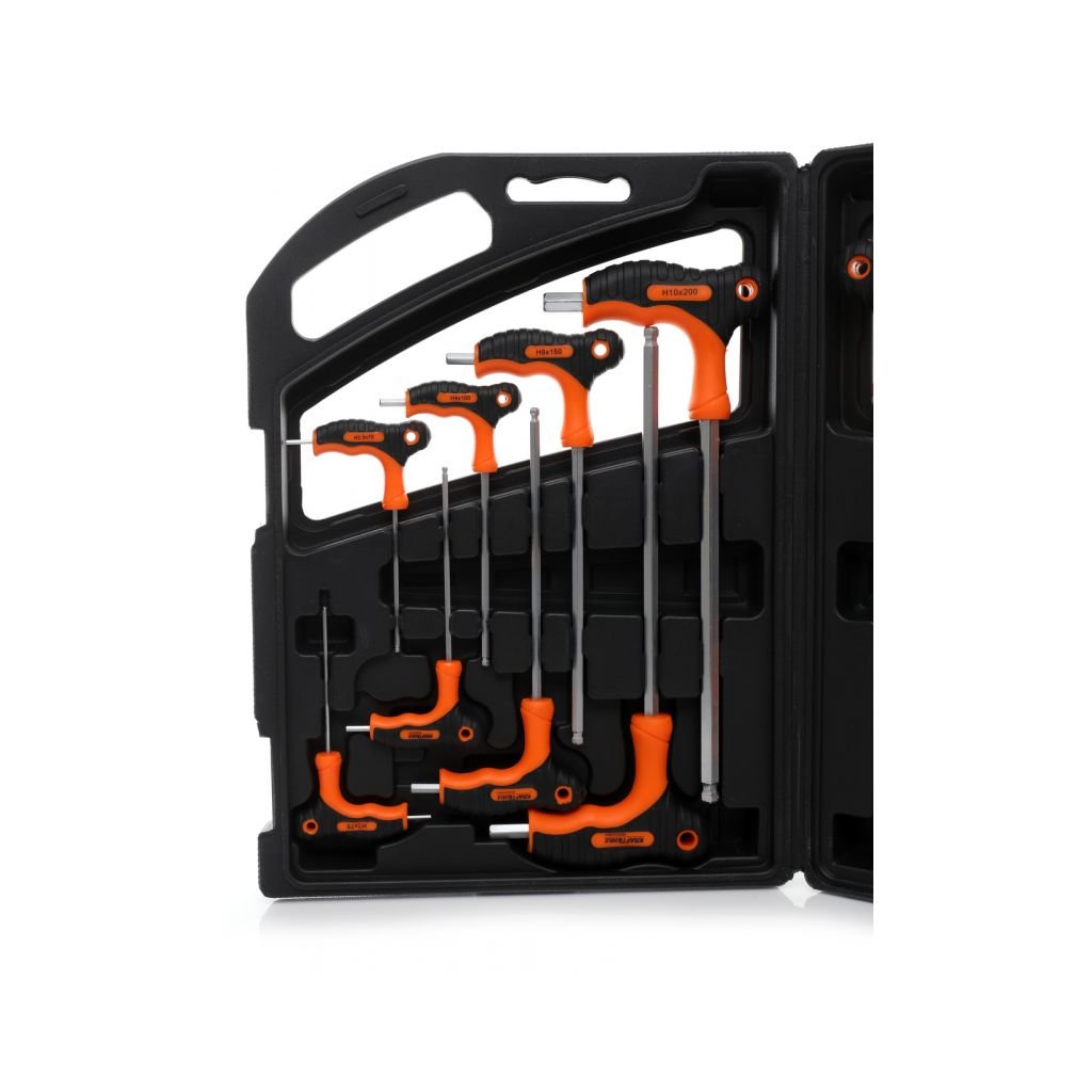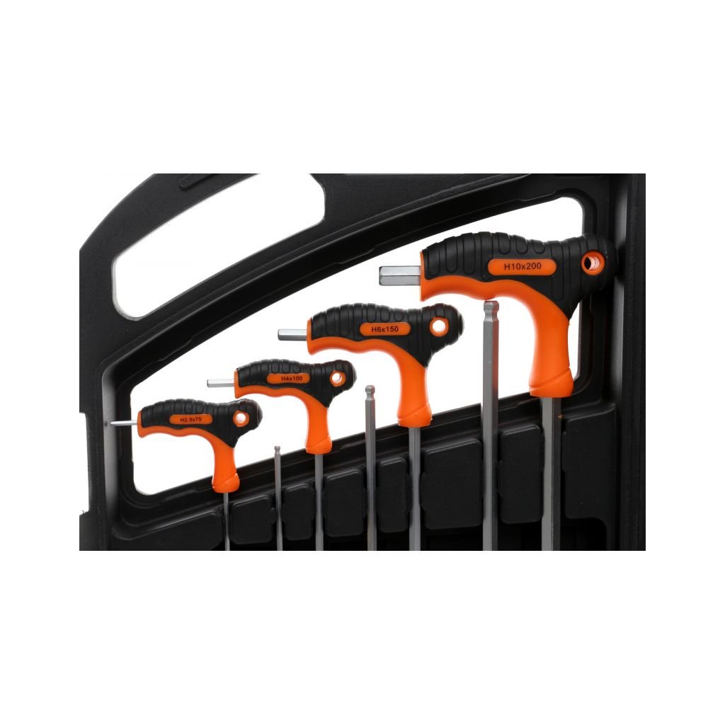 - 8 imbusových šroubováků typu "T" (2.0x75, 2.5x75, 3.0x100, 4.0x100, 5.0x150, 6.0x150, 8.0x200, 10.0x200 mm)
