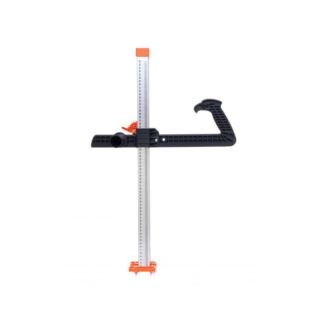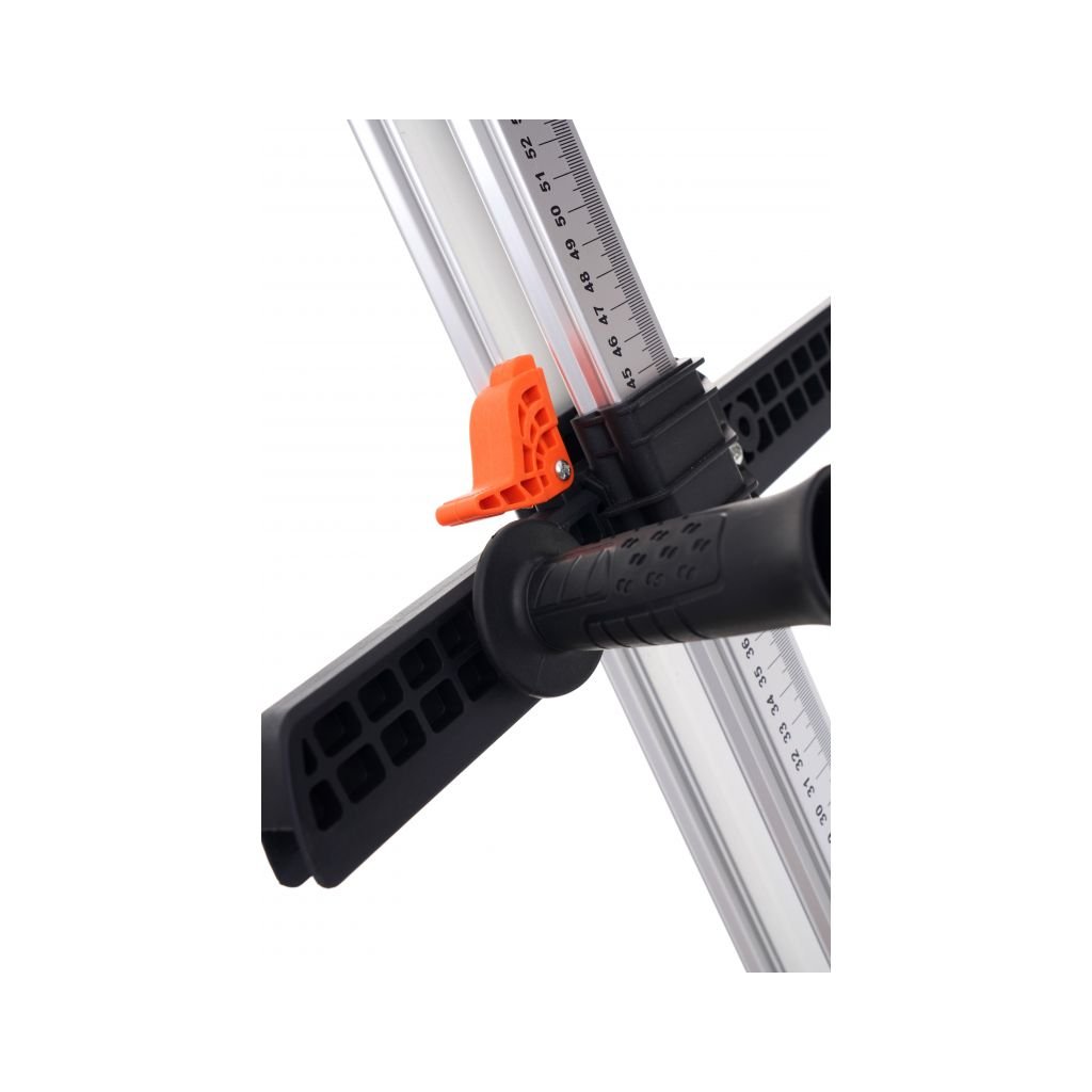 - Vodicí lišta se stupnicí: Přesné nastavení šířky řezu díky měřicí stupnici v centimetrech.