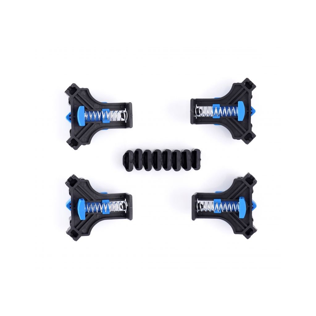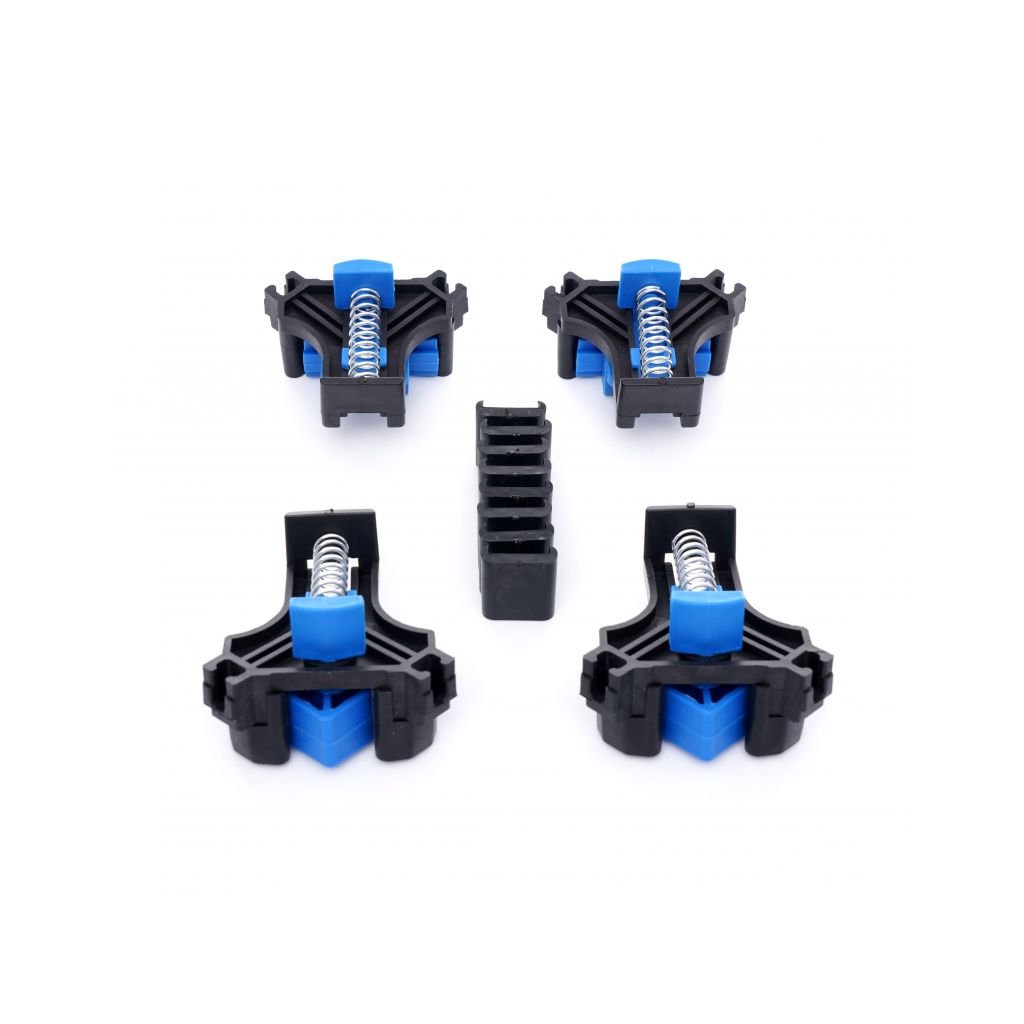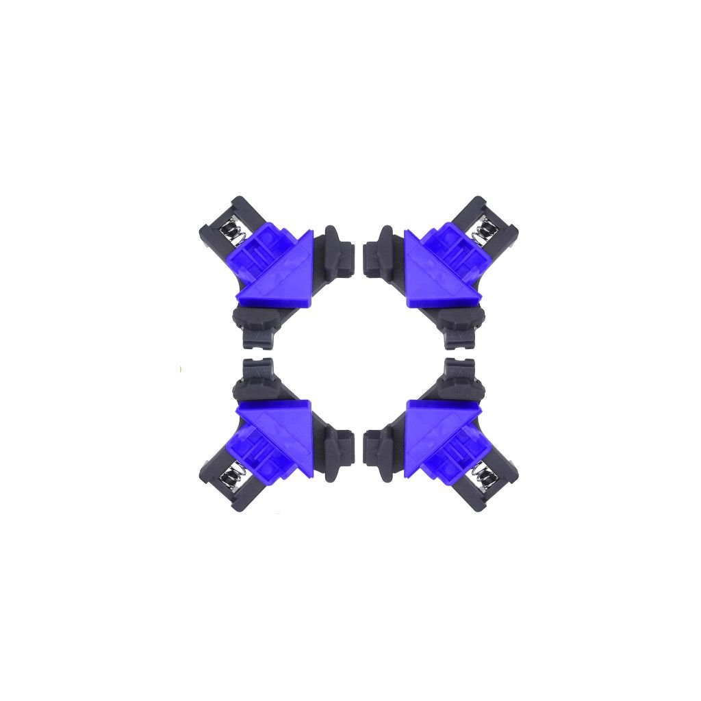 Sada 4 tesařských upínačů Kraft&Dele umožňuje rychlé a snadné upevnění desek, rámů atd. pod úhlem 90°