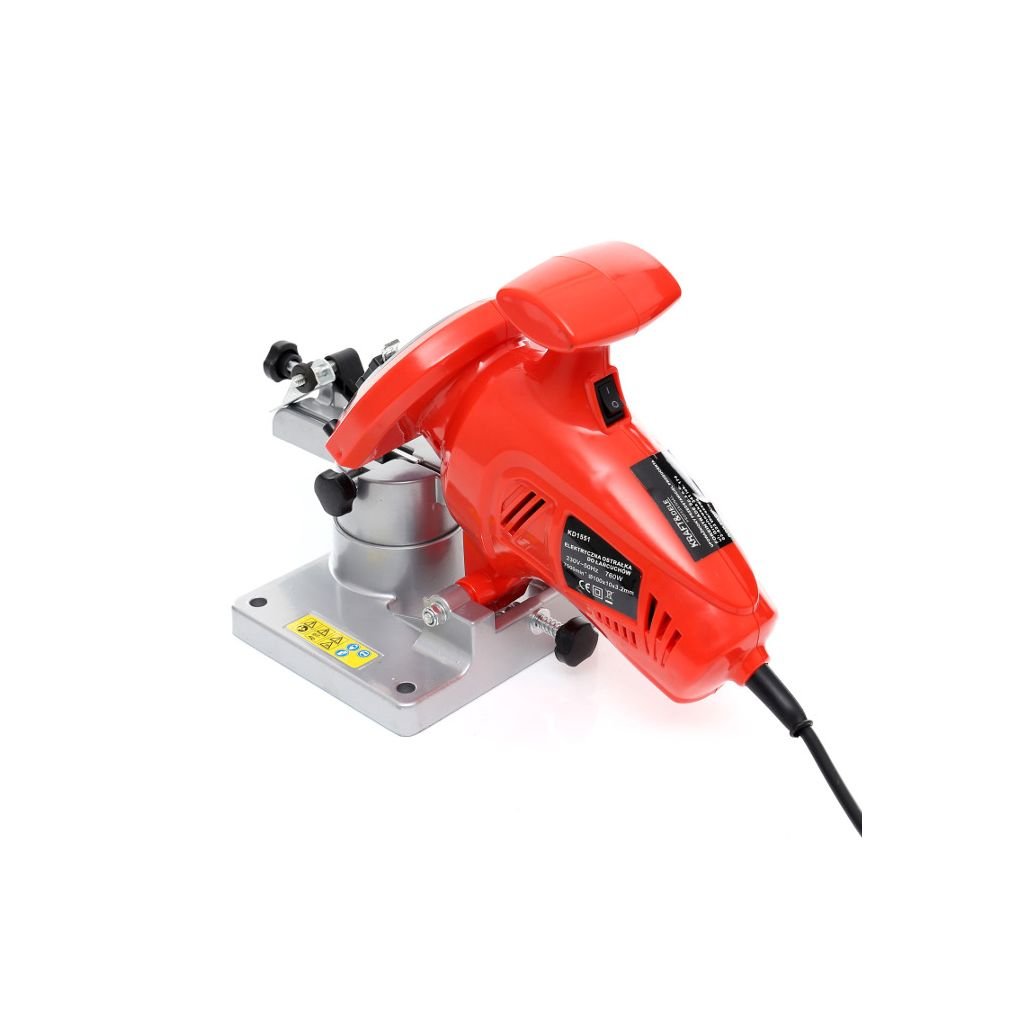 Stroj je vybaven standardním brusným kotoučem o průměru 100 mm a tloušťce 3,2 mm, navíc je vybaven omezovačem hloubky broušení, takže ostření řetězu lze provádět s větší přesností