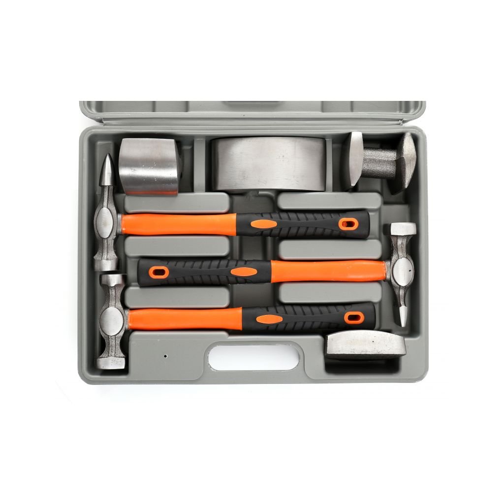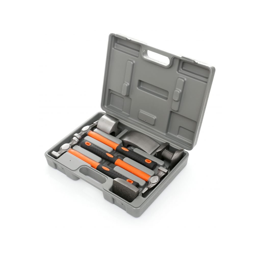 Velmi kvalitní sada 7 kusů klempířských kladiv a kovadlin značky Kraft&Dele obsahuje: