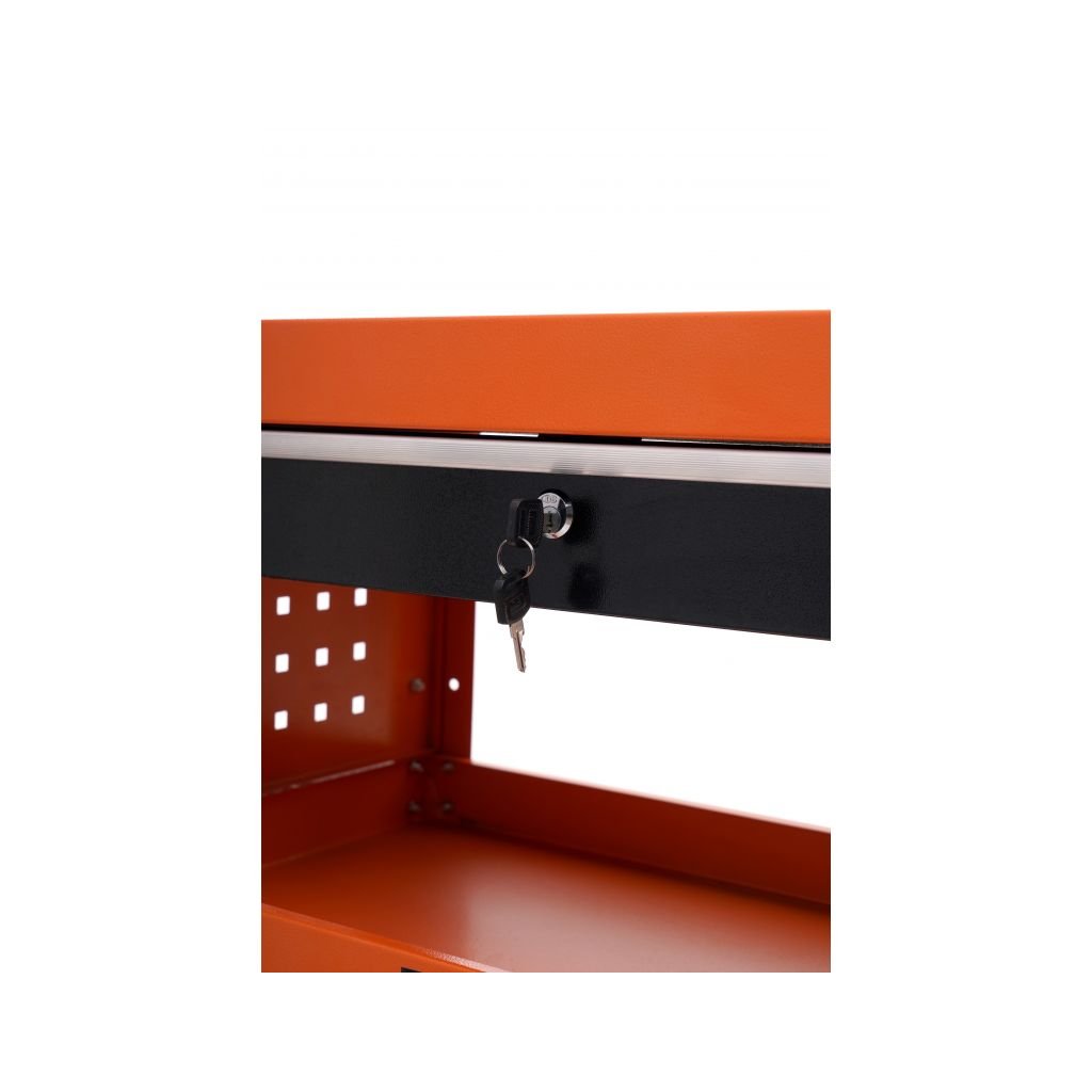 Dílenský vozík je dále vybavený namontovaným držákem pro snadný pohyb skříně