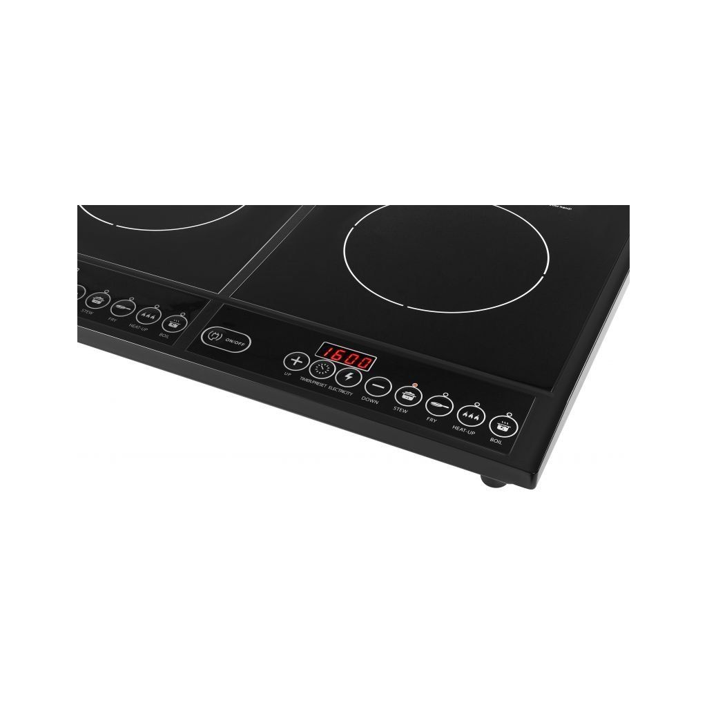 Praktický indukční vařič se dvěma varnými zónami pro rychlou a komfortní přípravu jídel. Indukční technologie zajišťuje vysokou energetickou účinnost a rovnoměrné zahřívání. Čtyři přednastavené režimy (pokrm, smažení, ohřívání, vaření) a funkce časovače usnadňují vaření. Ovládání probíhá elektronicky přes přehledný dotykový panel.