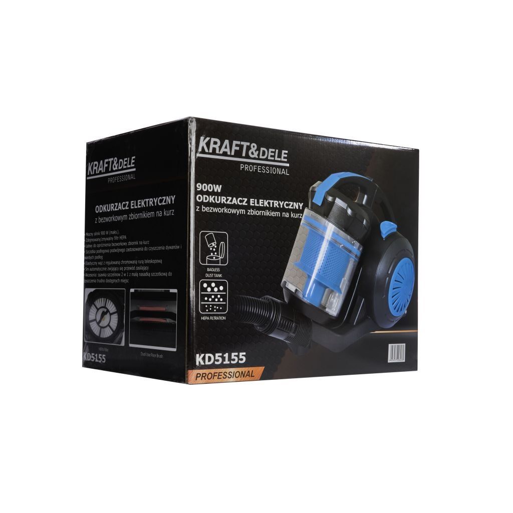 Bezsáčkový vysavač KD5155 od značky Kraft&Dele je výkonné a efektivní zařízení navržené pro důkladné čištění různých povrchů. Díky inovativní cyklonové technologii, která vířivým pohybem shromažďuje nečistoty do sběrné nádoby, není potřeba používat sáčky, což přispívá k vyšší hygieně, stálému sacímu výkonu a nižším provozním nákladům.