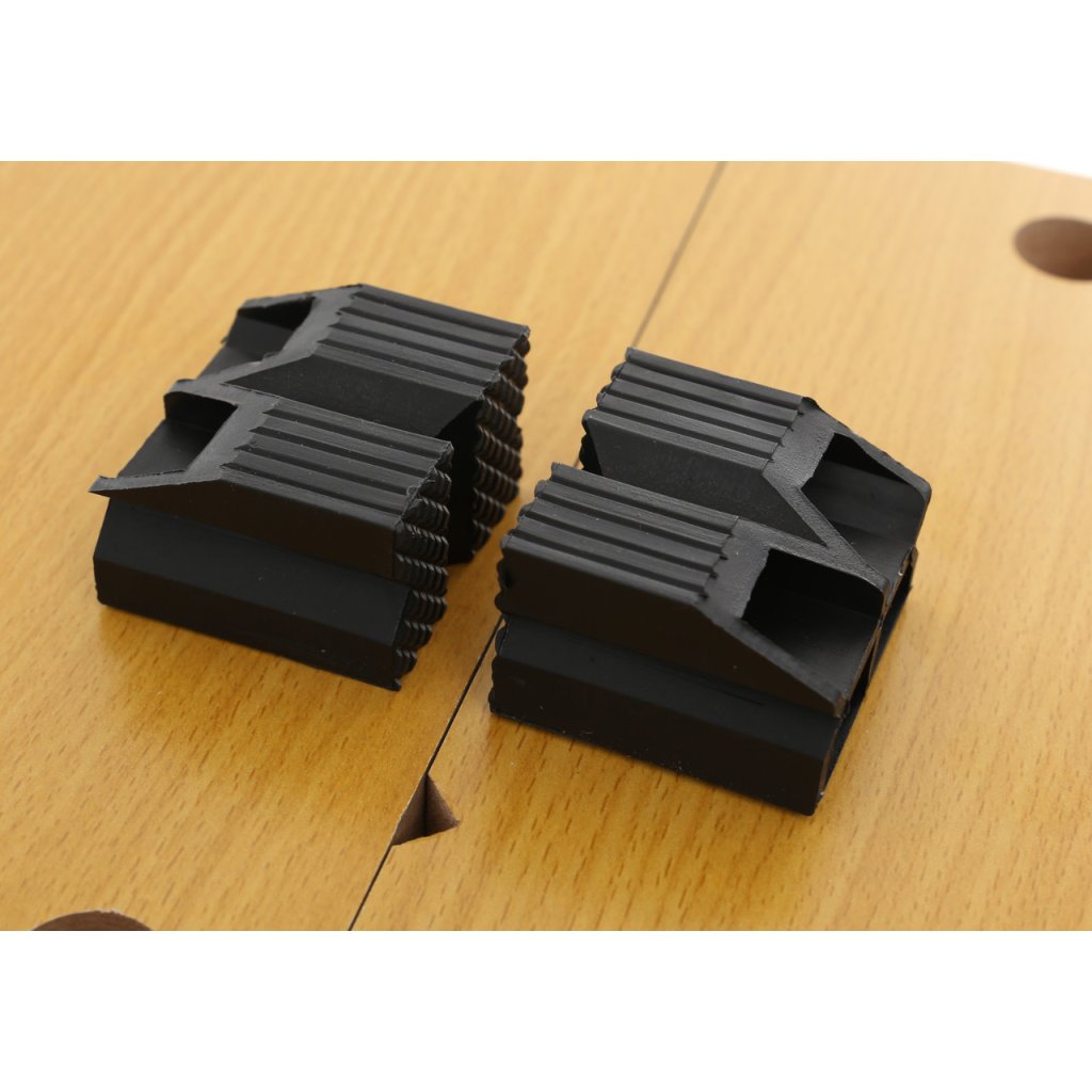 Upevnění předmětů se provádí upínacími čelistmi, které se dají vyjmout a vložit do otvorů v deskách stolu a nastavit do požadovaného tvaru
