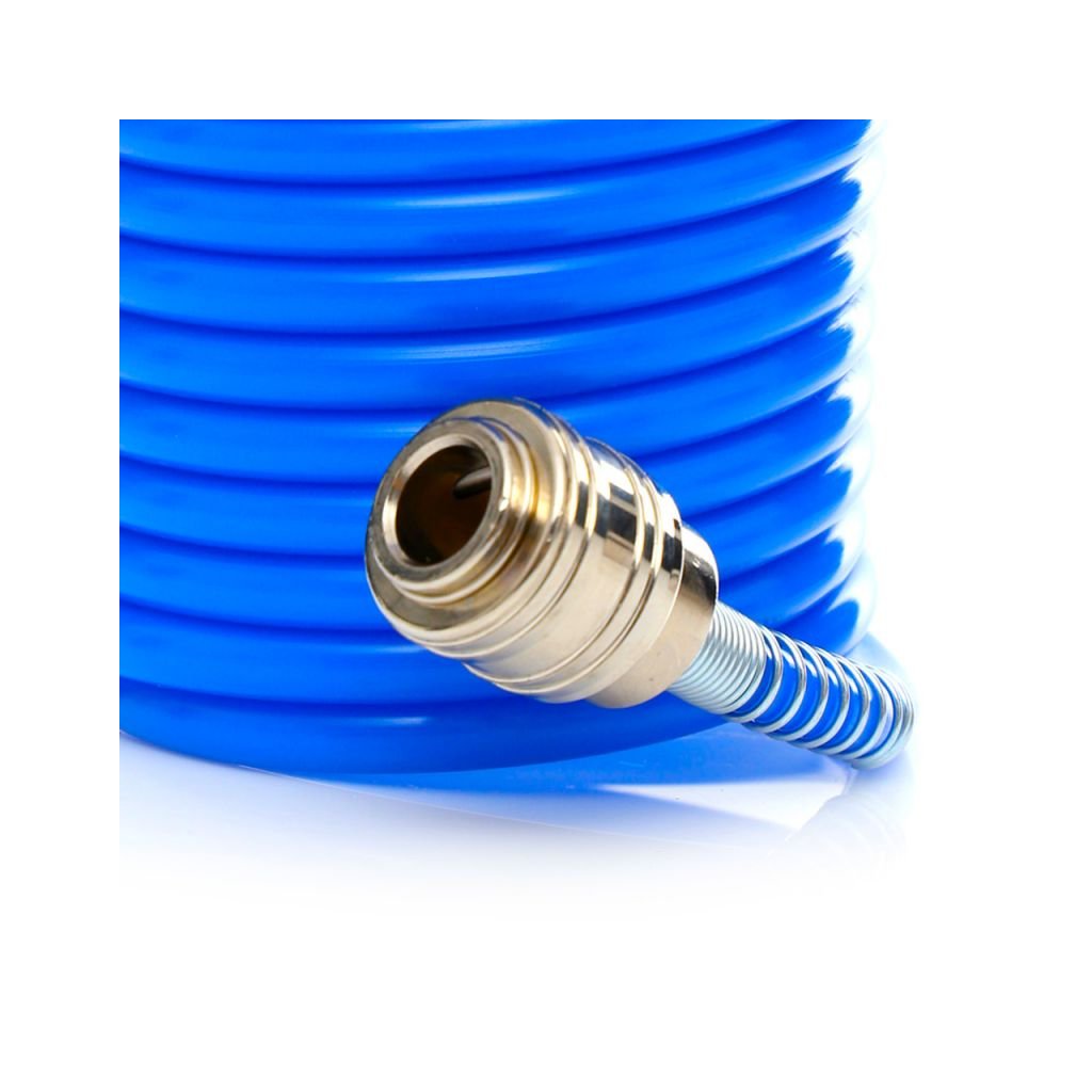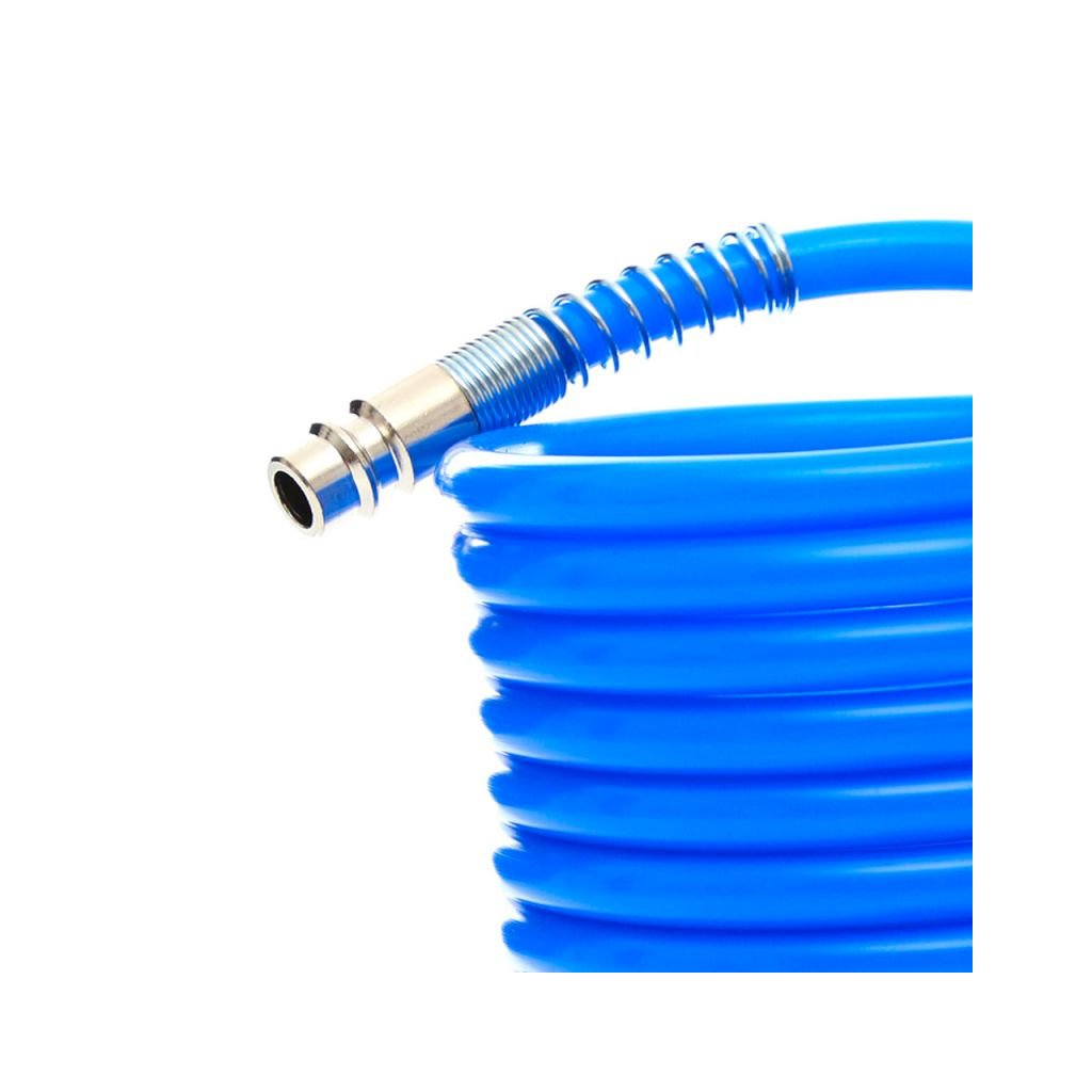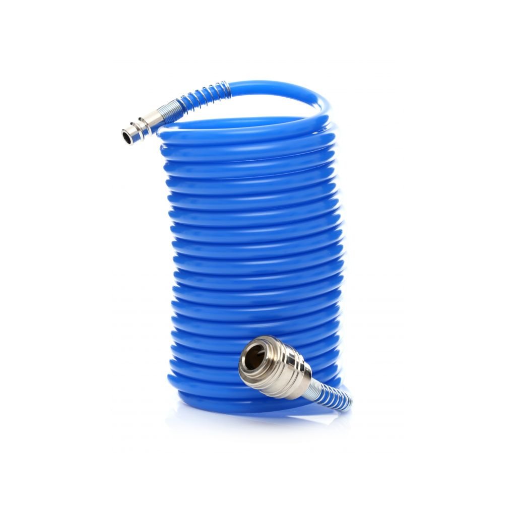 Spirálová hadice s rychlospojkami značky Kraft&Dele je z pružného PVC určená pro pneumatická zařízení