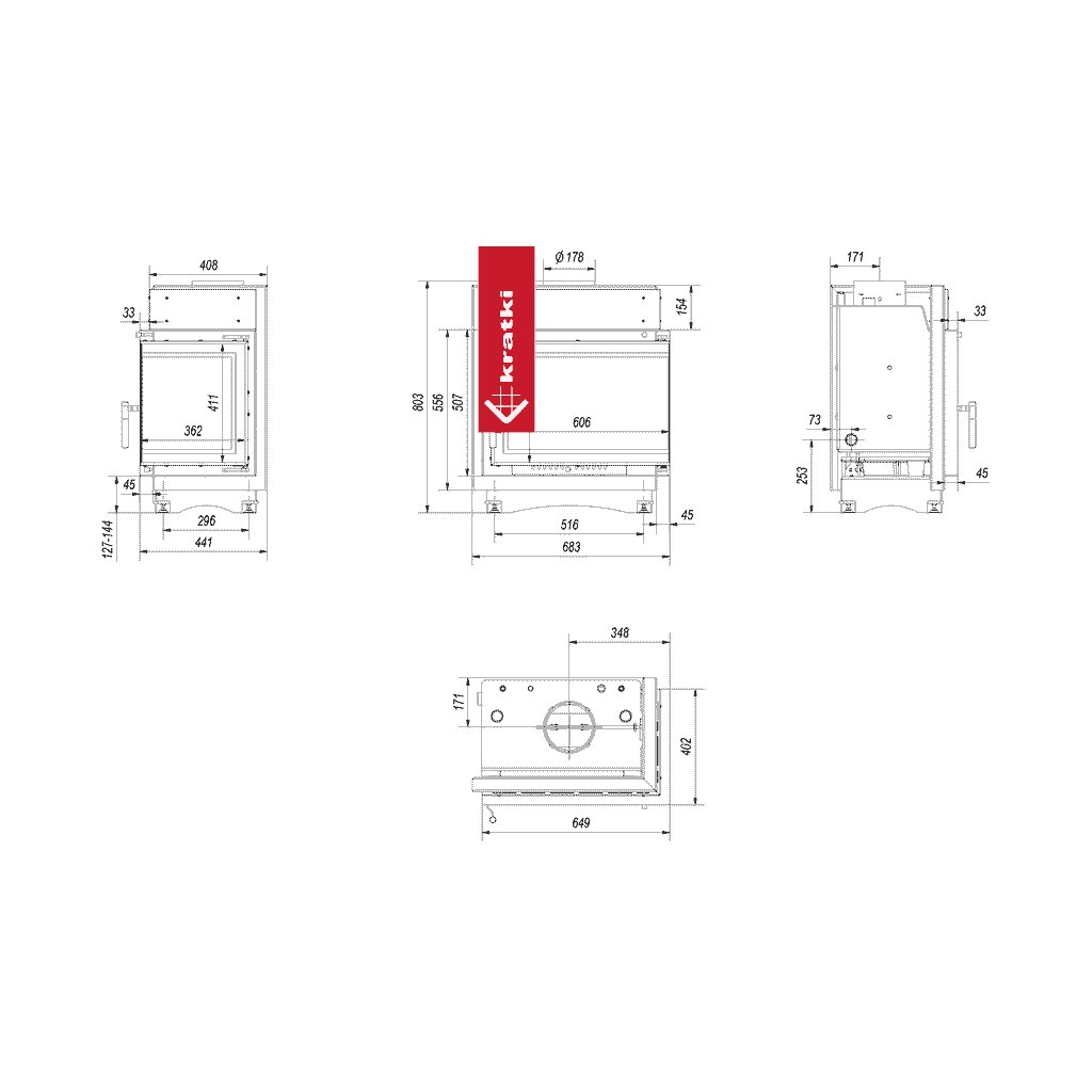 KRATKI Krbová vložka Maja s teplovodním výměníkem 8 kW BS DECO, pravé prosklení