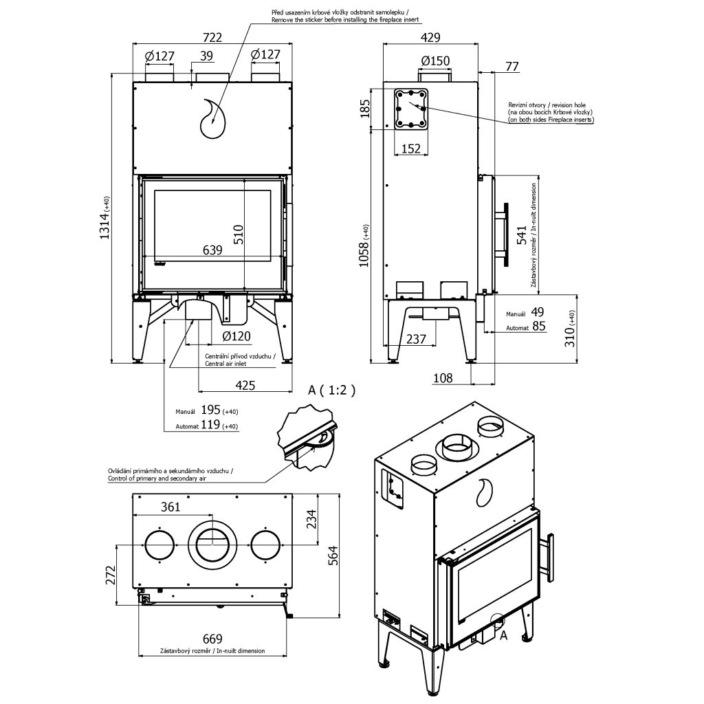 Manuální regulace - nerezové ovládání přímo na krbové vložce. Pomocí ovladače přívodu vzduchů si sami nastavíte optimální výkon. Ovladač je velice jednoduše ovladatelný a nepůsobí rušivě.