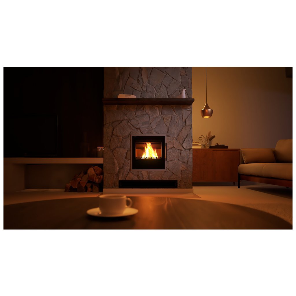 Revoluční řešení spalovací komory nabízí nepřekonatelný zážitek z ohně. Dřevo hoří po celé ploše dna, díky systému bezroštového spalování a systému kanálků na přívod vzduchu. Výsledkem je minimální spotřeba paliva. Pohled do ohně jsme povýšili na novou úroveň.