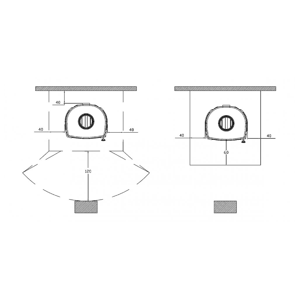 Bezpečnostní vzdálenosti od hořlavých součástí jsou následující:
